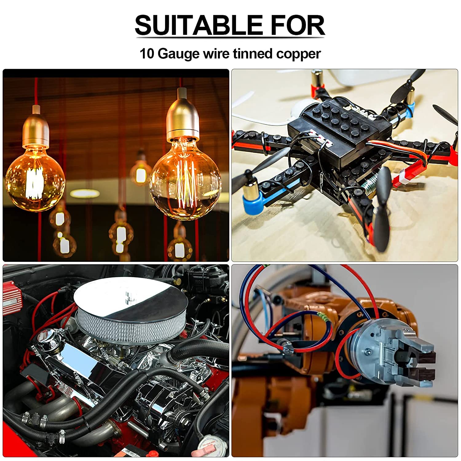 - UL1015 Listed: Tinned Copper 10 AWG Cable, 105 strands 0.254 mm tinned copper wire, protecting them from corrosion, and easy to solder.