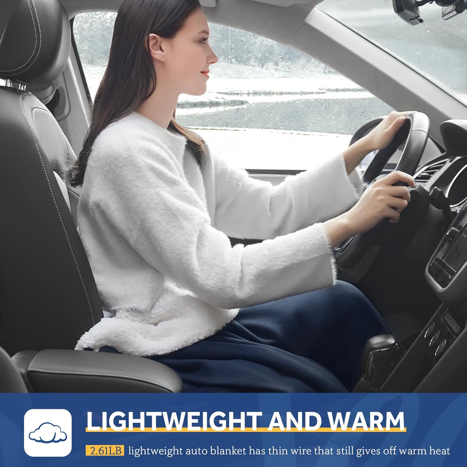 - 【Energy-efficient】 Portable heated blanket with 3 heating levels & 4 hours auto off, you can choose the temperature according to your needs. Compared to turning on the entire vehicle's heating system, a car heating blanket only uses a small amount of electricity, thus reducing energy consumption.
