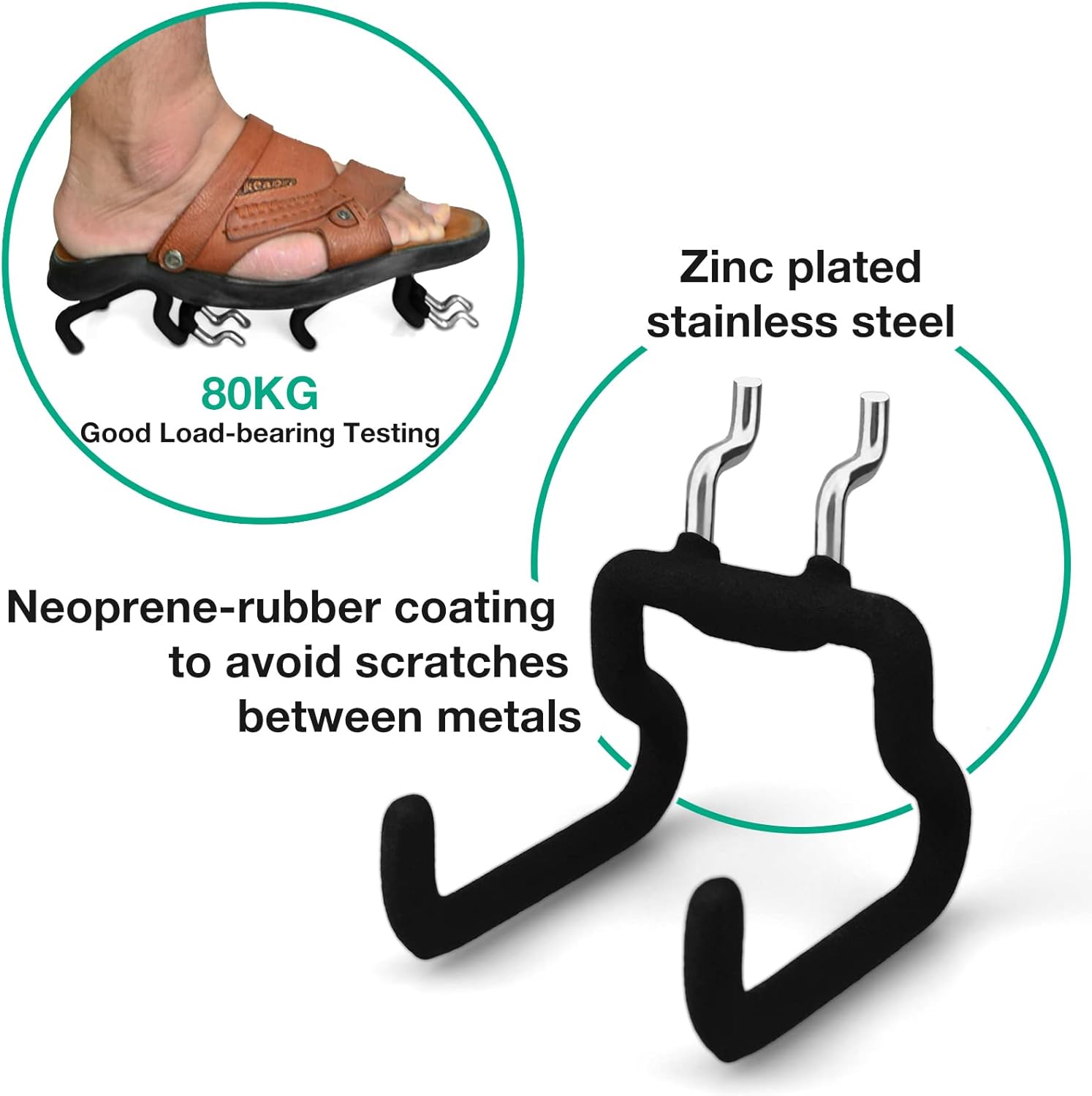 - 8-Pack Heavy Duty Wall Hooks: 4 x Short type flat double hooks, 4 x long type flat double hooks. Garage Storage Hooks with a rubber-like coat got anti-slip and anti-scratch feathers, holding tools well and firmly. Zinc plating helps stop corrosion