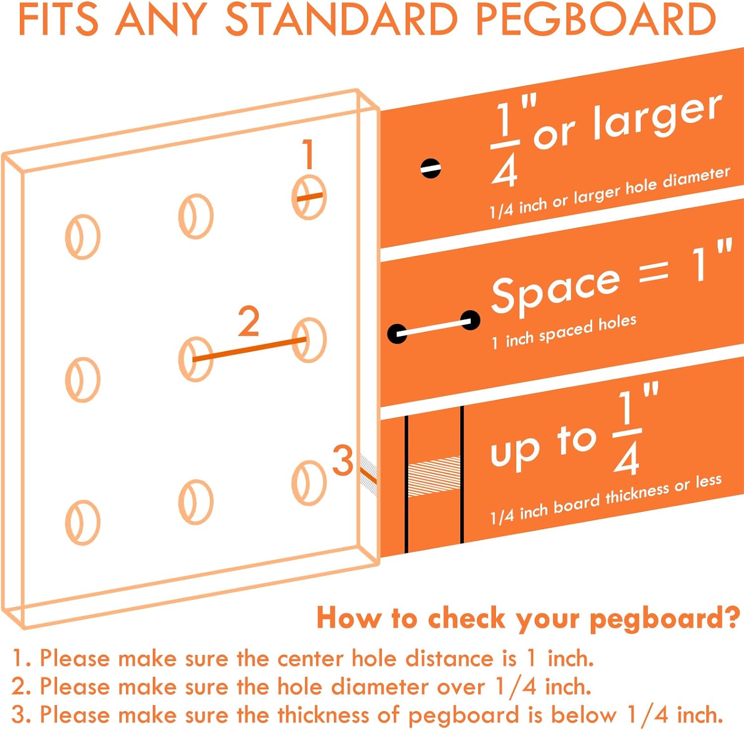 - Easy Mounting Load More: Mountable on 1/4in standard-sized pegboards. No peg lock is needed to fix hooks on the pegboard, hanging heavier items up to 20 lbs. Stand firm and unshakable during use.