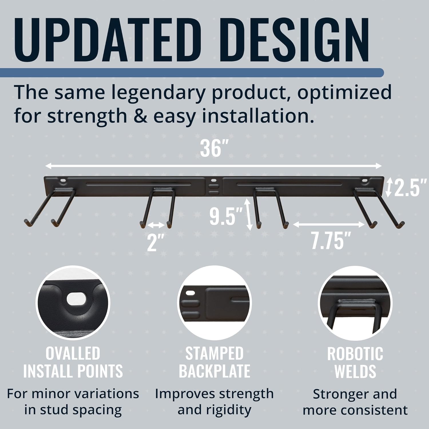 - QUICK & SECURE INSTALLATION – Each garage hook rack includes upgraded hardware with superior tensile strength and a protective electrophoresis coating. Oval mounting holes allow flexibility in stud spacing, and the all-in-one design means no assembly—just mount and get organizing. Ideal for garage organization or home improvement projects.