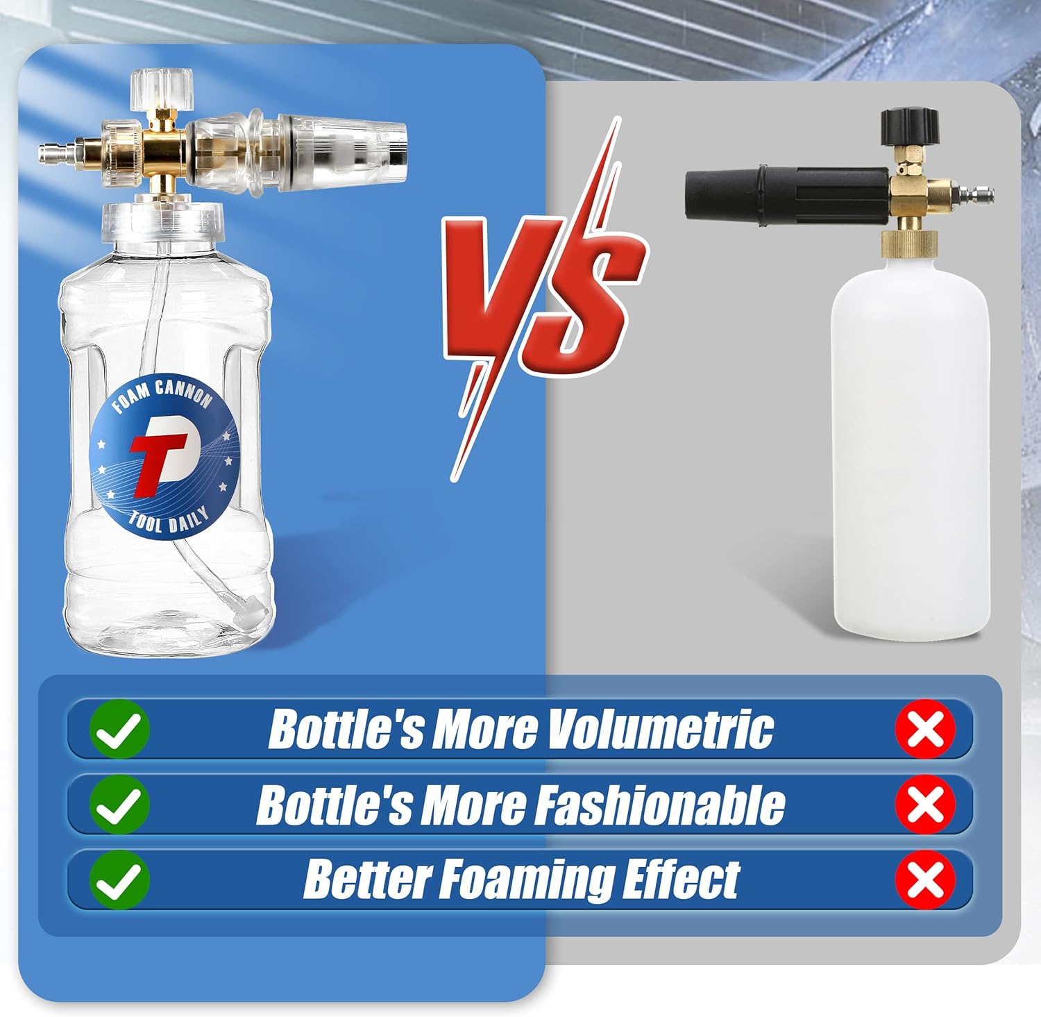 Tool Daily Pressure Washer Foam Cannon, Adjustable Snow Foam Lance with M22 and 1/4 Inch Quick Connect, Additional Orifice Nozzle 1.1mm, Car Wash Mitt, 1.5 Liter