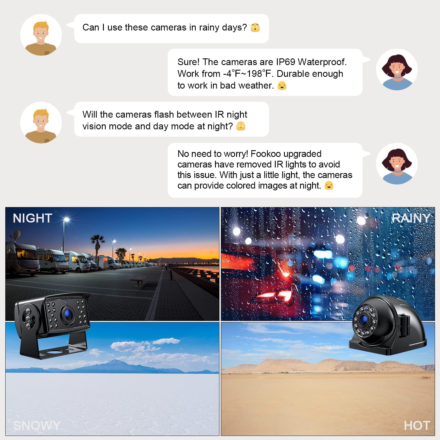 Fookoo HD 1080P 7" Wired Backup Camera System, 7-inch Quad Split Screen Monitor W/Recording, IP69 Waterproof Side View Rear View Cameras, Parking Lines for Truck/Trailer/RV/Tractor/ 5th Wheel (DY704)