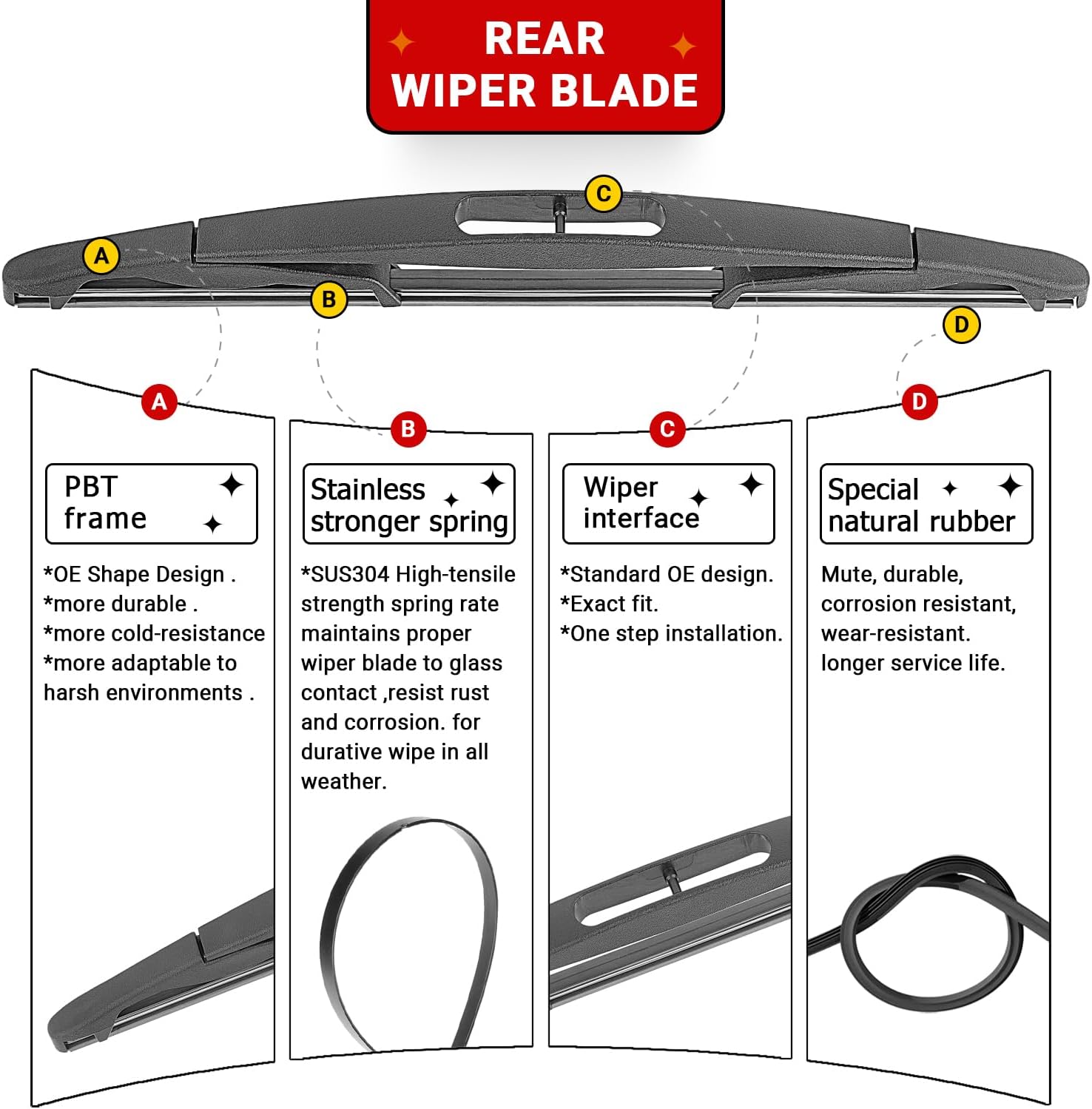 - {WIPER INSTALLATION}: Exact Fit OE Wiper Interface, (Easy and quick to change, quick to remove, easy to clean.)