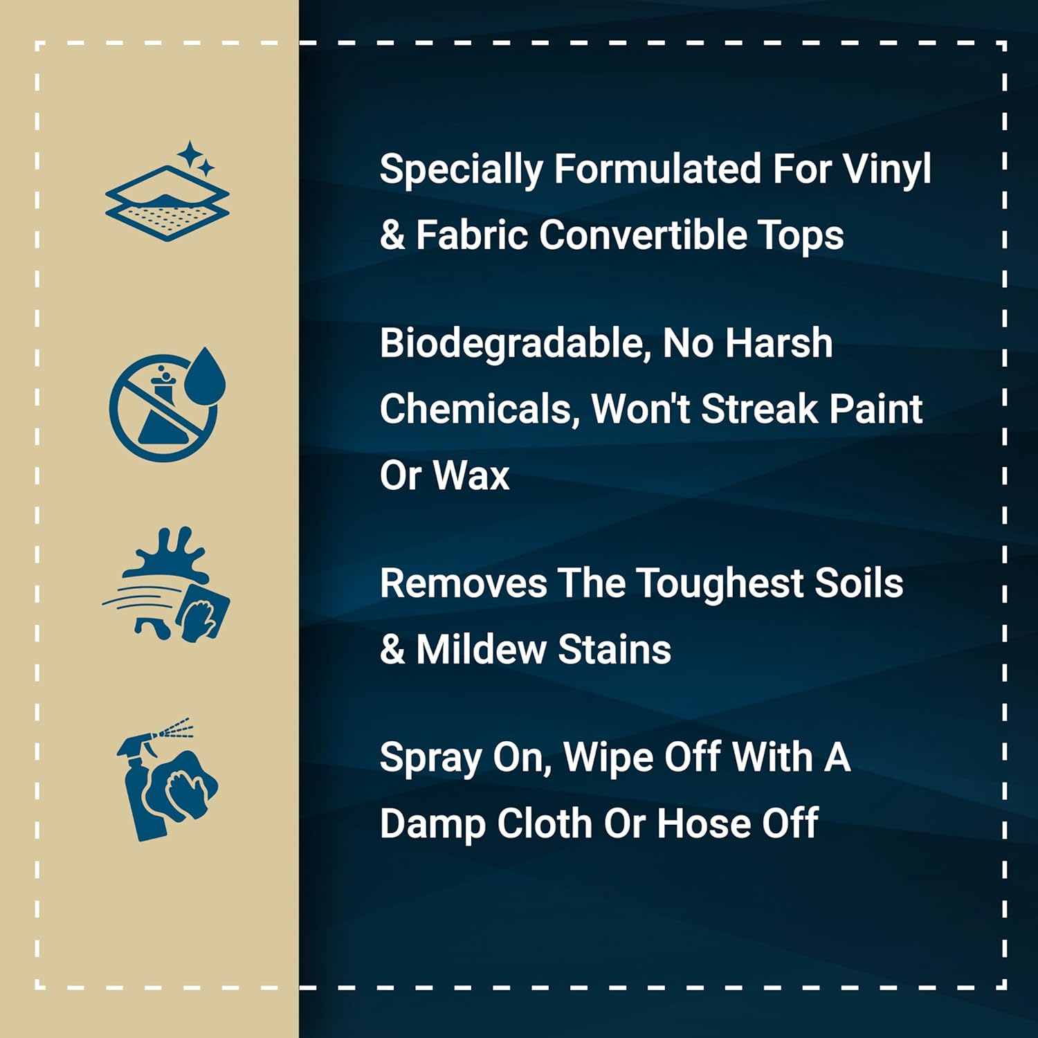 - BIODEGRADABLE FORMULA WONβT STREAK PAINT β Topless Sauce is environmentally friendly and contains no harsh chemicals or bleach so in addition to being safe for convertible tops, it will not damage paint, strip wax or leave unsightly residue.