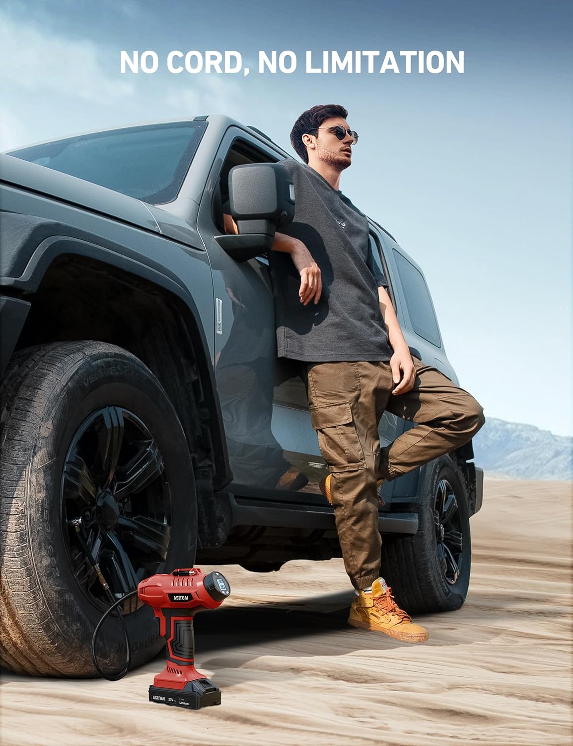 - 【FAST INFLATION&CHARGING】: Air/Electricity The 20V working voltage provided by the rechargeable battery can inflate fast, tires of size 195/65/R15 can be filled in just 4 minutes. The 2000mAh high-efficiency rechargeable battery can charge 4 tires of the same size at a time, and the exclusive charger allows the battery to go from 0 to full in just 1 hour.