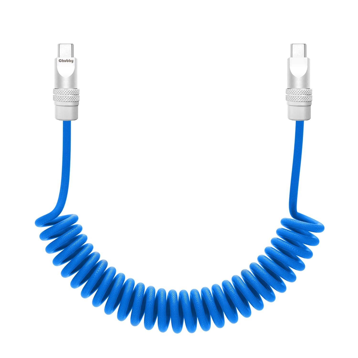 chubbycable Curly Chubby - Retractable Fast Charging Cable 240W Coiled Charger Cord for Car Durable USB-C Cable for Phones, Tablets and More, Light Blue, Type-C to Type-C, 1.3FT-2.3FT