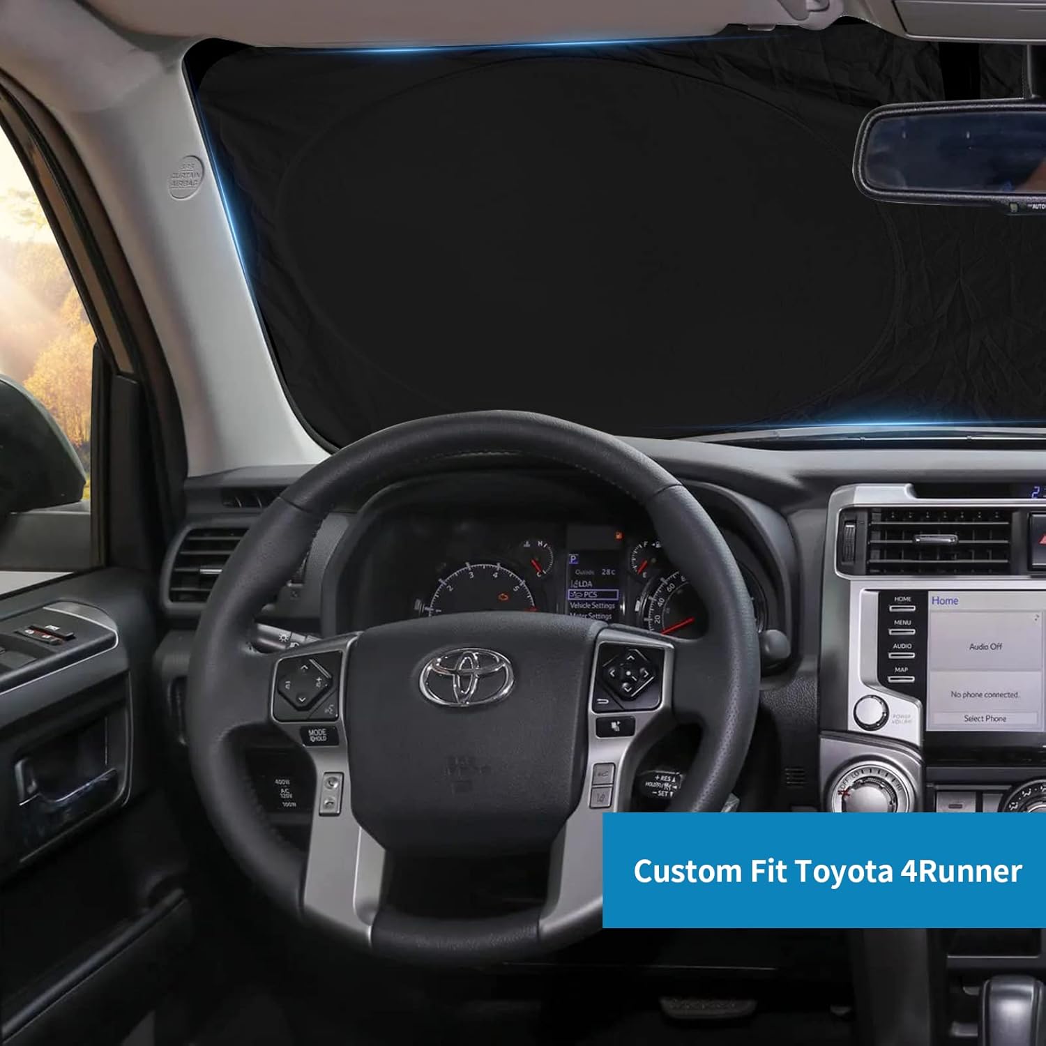 - ♥ 【PRECISE FIT DESIGN】 The sun shade expanded size: L x W=59x31.5 inches (152x80cm),Checking the sunscreen size for your car windshield first. The front windshield shade has been custom cut specifically for Toyota 4Runner, ensuring a perfect fit with no sagging or collapsing like other car heat shields.
