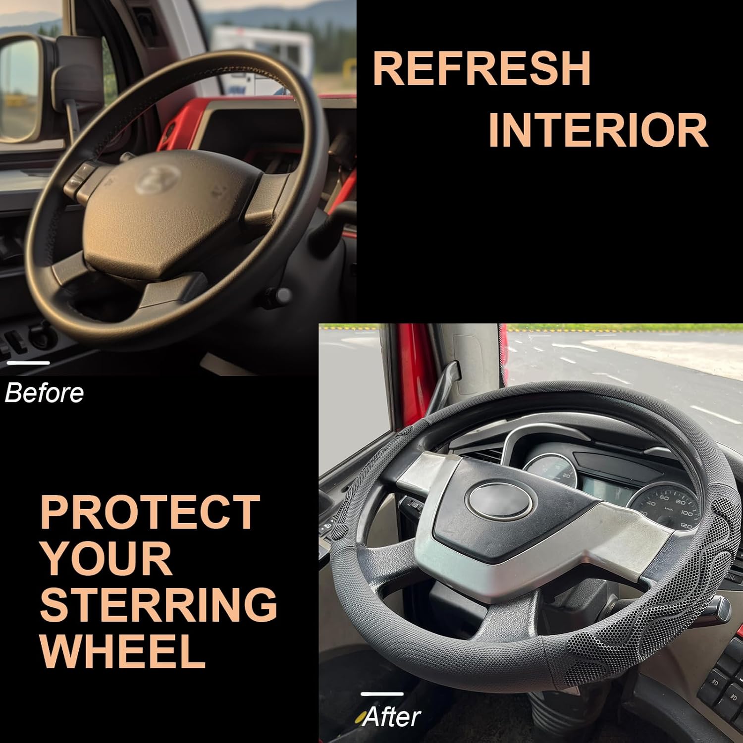 - Installation Instructions: The PINCTROT steering wheel cover is designed to be flexible and snug-fitting. During installation, please exert some force to ensure a secure fit. This cover made to fit 17.5 - 18 Inch Steering Wheels found in 18 Wheelers, Semi Trucks, Tractor Trailers, RVs, Rig Trucks, Container Trucks, other Large Vehicle and old classic antique cars.