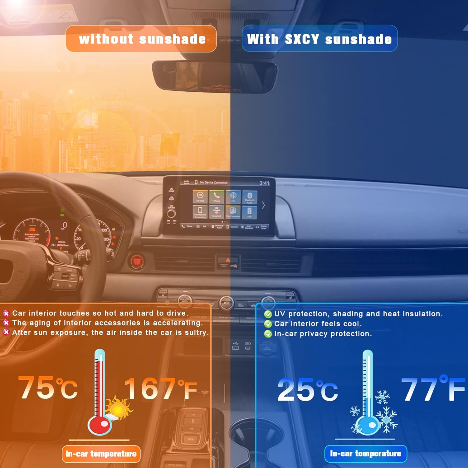 - 2.Sun Protection: Solve your concerns about parking for a long time under the scorching sun,prevent the 2019-2023 2024 2025 Pilot 's interior from getting sunburned and extend your 2023 Pilot interior accessories’life.