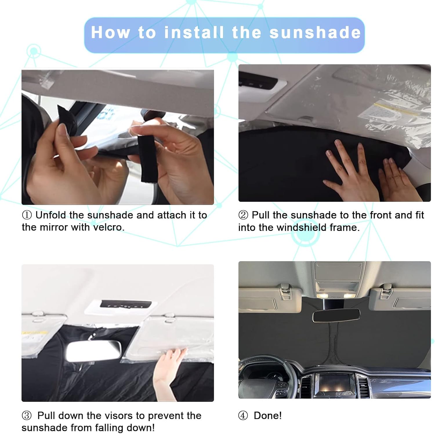 - 5.Easy to stall: our sunshade for your 2019-2023 2024 2025 Honda Pilot is equipped with a storage pouch and a detailed installation manual. Before installation, you only need to place it under the windshield according to the instructions. When stowed, it can be folded into the storage bag, which does not take up space and is convenient to use.