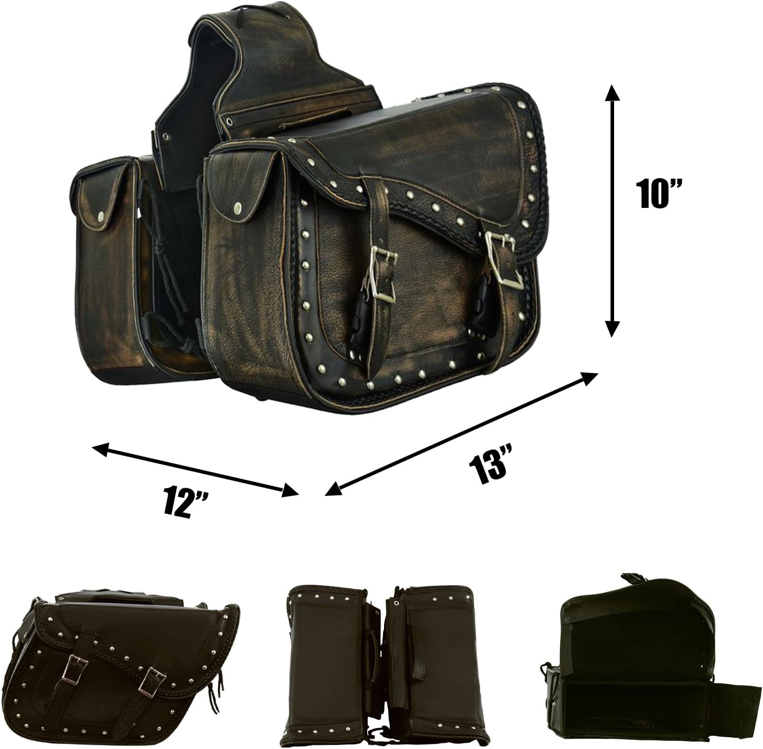 - 【Leather Material】This motorcycle saddlebags is made up of soft and durable heavy-duty leather. The reinforced sewing and moderate thickness make our motorcycle saddle bag can always keep its shape and longer service life.