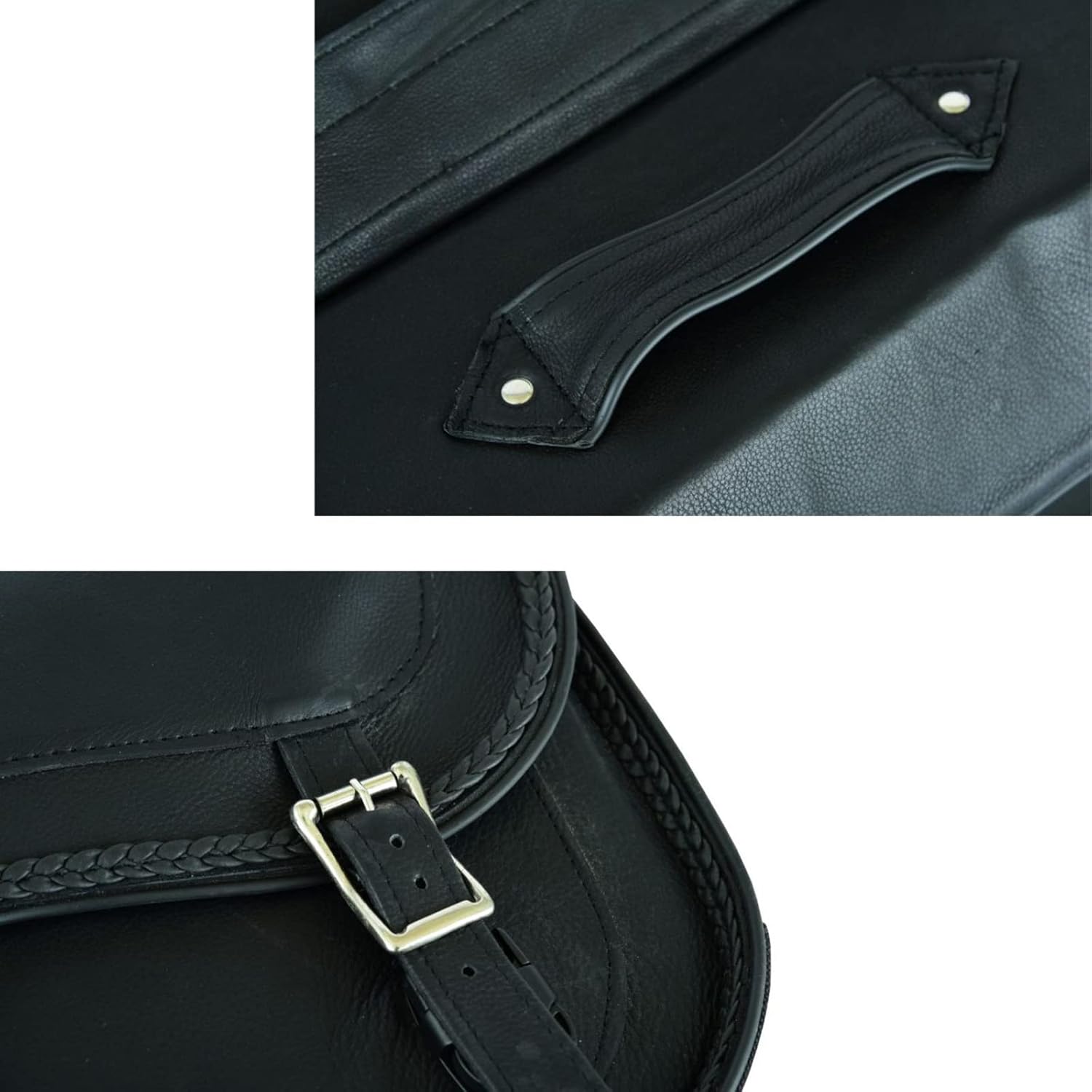 GARGOYLE BELLS Motorcycle Saddle Bags Genuine Leather Motorcycle Luggage Bag For Softails Sportsters and Choppers (No Stud, Black, 13”x13“x10”)