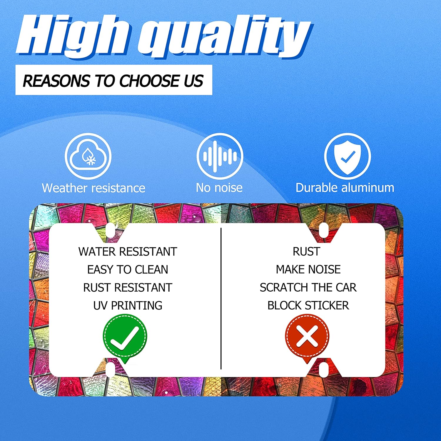 - Design:Use Advanced digital printing Protects license plate frames from Whether it's a car wash, heavy rain or hot weather, it still looks brand new,Let your car still be unique and stylish while driving on the road