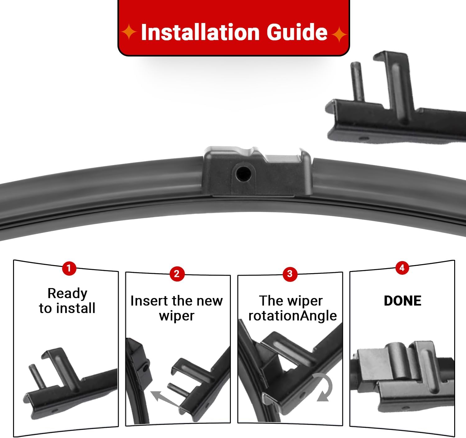 - {WIPER PERFORMANCE}: Natural rubber material making sure the wiping is the best, quiet wiping without judder or squeaking, resistant and a long service life.