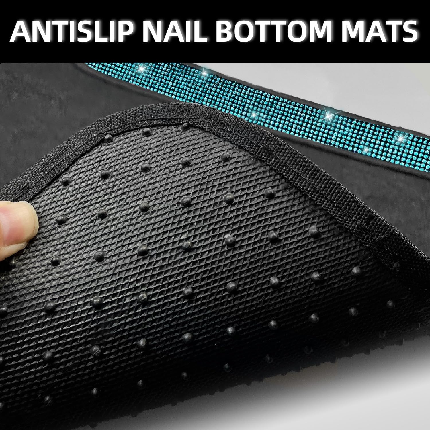 NBTEPEM Aquamrine Bling Car Floor Mats Full Set, Universal Fit Most Cars,SUV, Trucks, 4 pcs Sparkle Glitter Diamond Carpet for Women Girls with Anti-Slip Pad (Aquamrine Diamond)