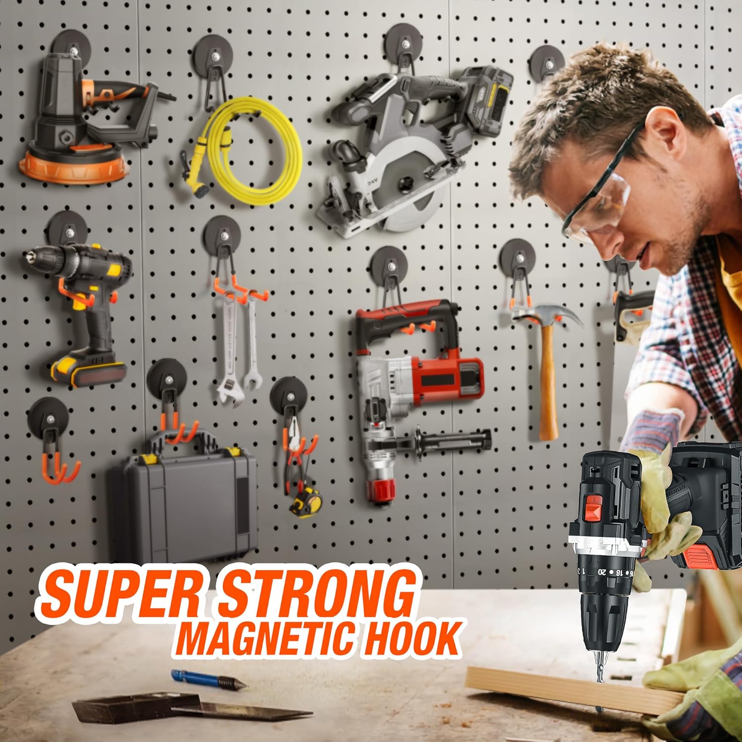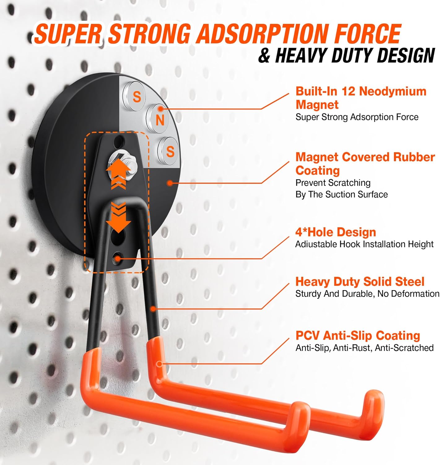 - š§²[2PCS Magnetic Hooks For Hanging] Large strong magnetic hook present an efficient solution for optimizing vertical storage space within your garage organization system. These multifunctional extra magnet storage hooks are suitable for both indoor and outdoor settings, including garages, gardens, kitchen, warehouse, cruise cabin, utility rooms and indoor/outdoor.
