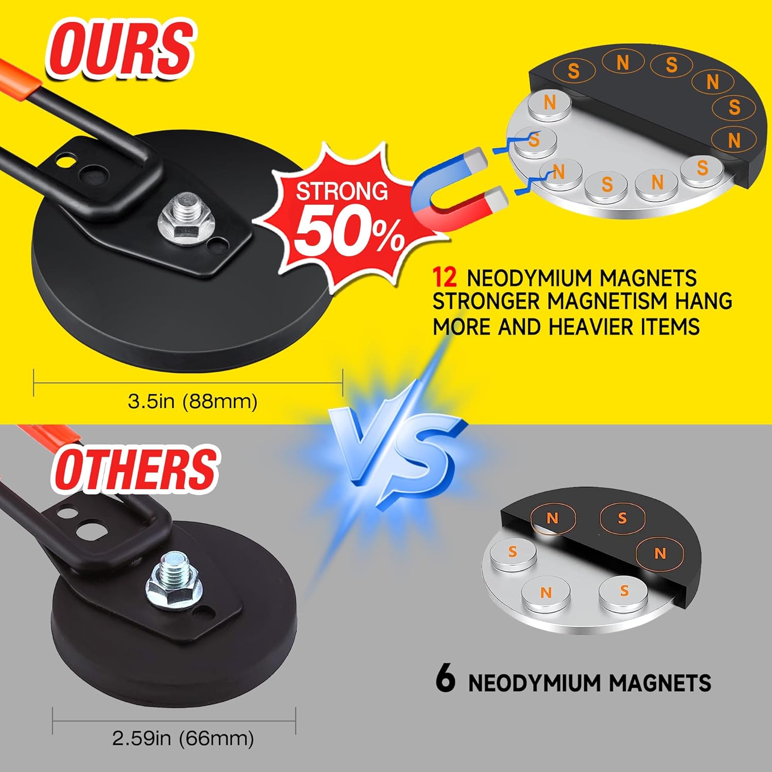 - š§²[Super Durablel] This heavy duty magnetic holder boasts a magnetic diameter of 3.5in(88mm) and features 12 powerful neodymium magnets. The base of the magnet hook is cover with premium soft rubber, providing excellent friction and protect surface from scratches, reduce wear, and make them durable.