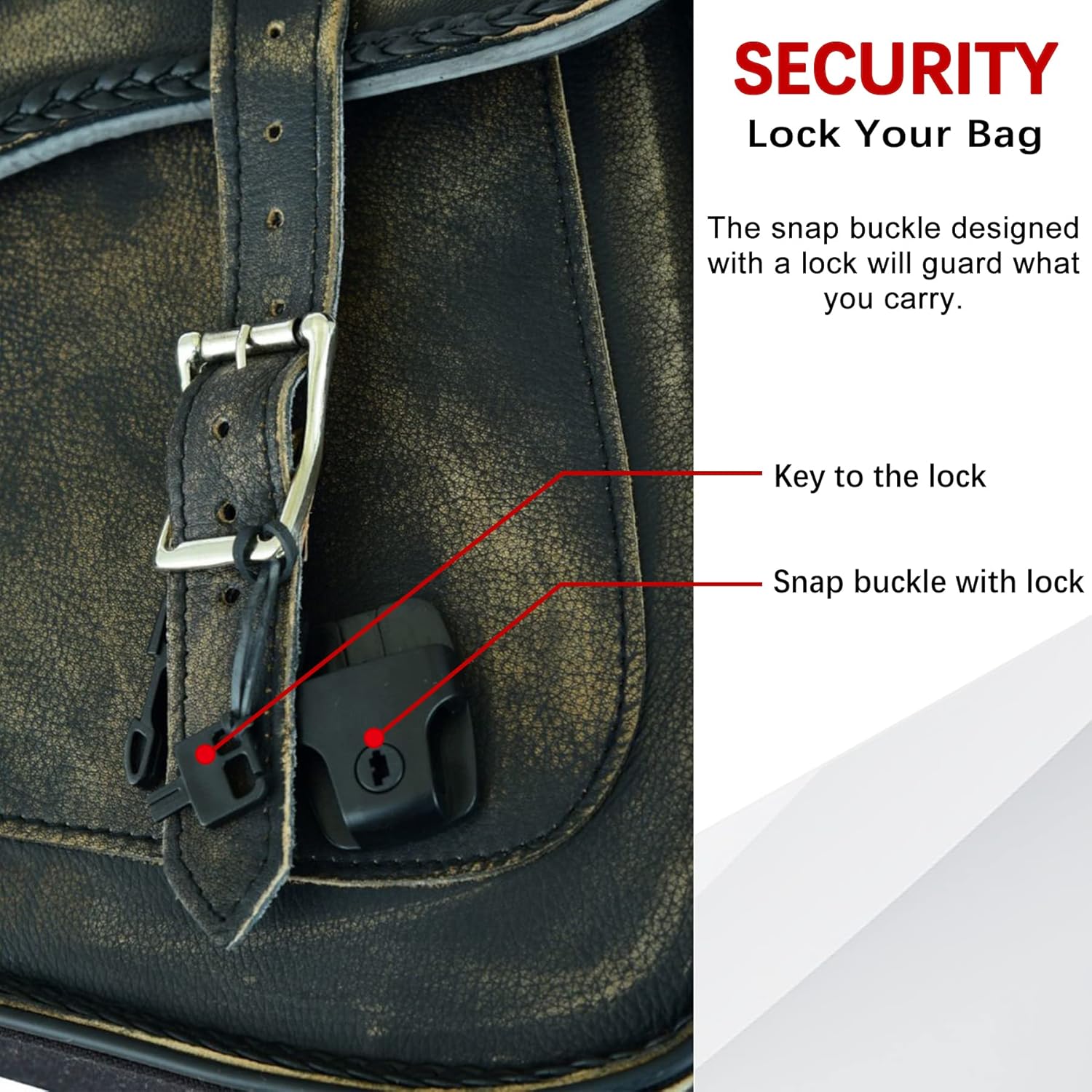 - [Fashion Appearance and Flap Design] - Thin braiding is built along edges and makes the saddlebags more fashion. The distressed brown saddle bags will give your motorcycle a new look while also greatly expand practicality of bike. Flap design and strong stitching make sure that the saddle bags will not lose luggage when riding fast on bumpy roads. Flap design helps prevent dust or rain from entering and keep items clean and dry.