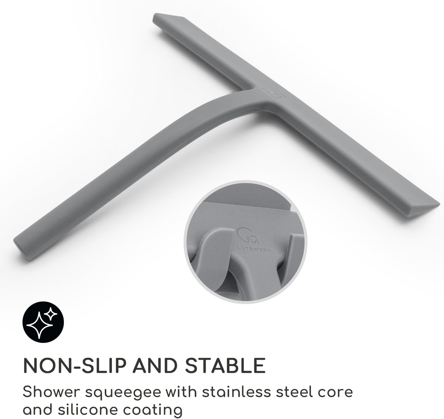 GÜTEWERK Shower Squeegee for Glass Doors, Silicone Window Squeegee, Bathroom and Glass Cleaning - Gray - 11 Inch