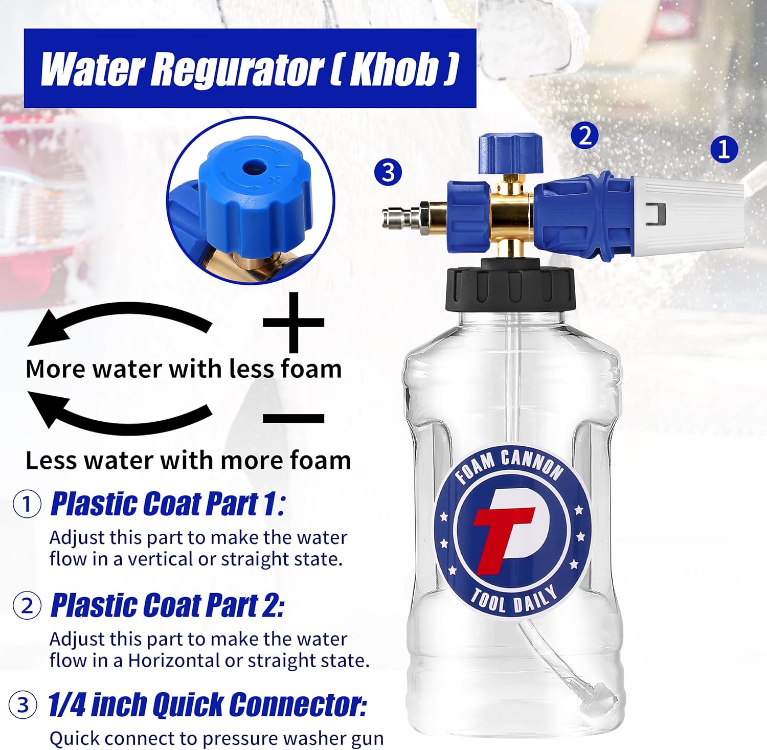 Tool Daily Foam Cannon for Pressure Washer, Adjustable Foam Blaster, Snow Foam Lance with M22 and 1/4 Inch Quick Connect, Additional Orifice Nozzle 1.1mm, 1.5 Liter