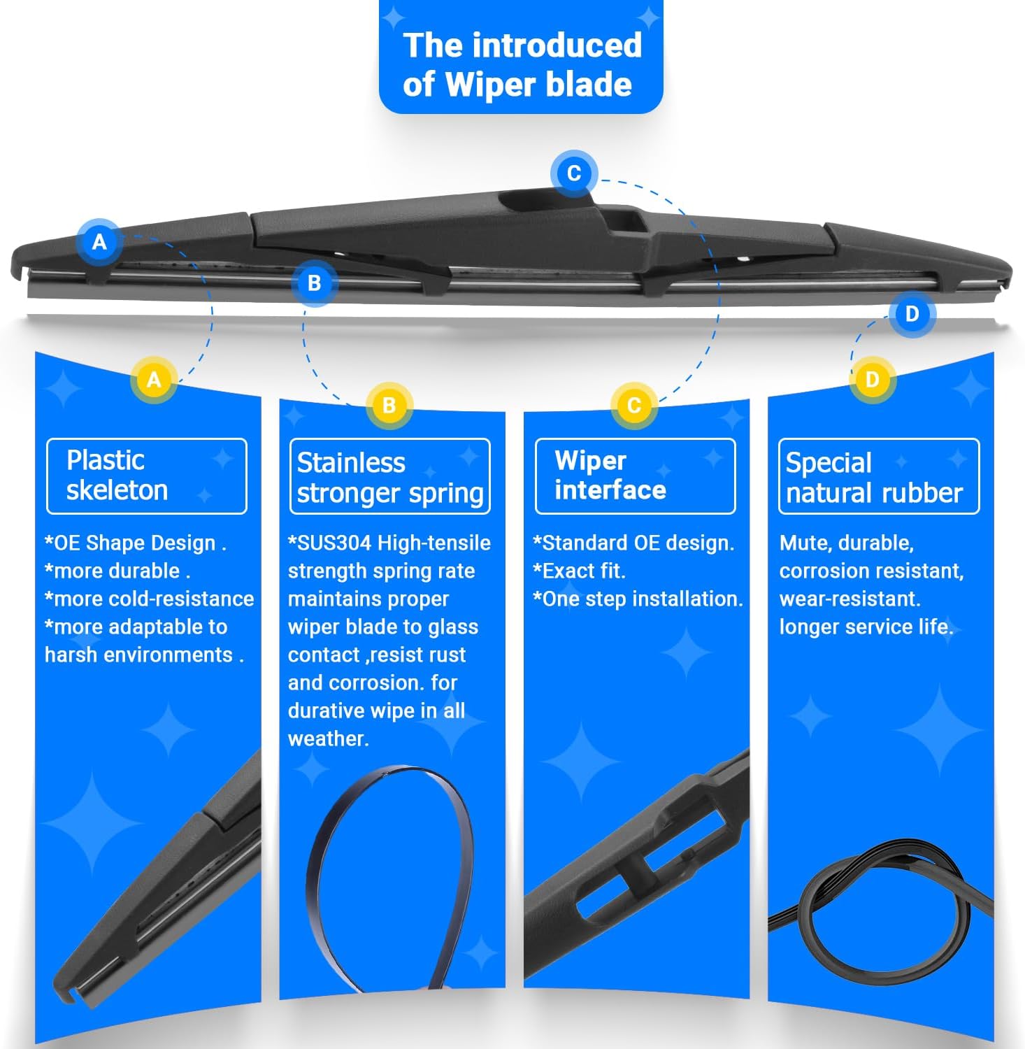 - {WIPER PERFORMANCE}: Natural rubber material making sure the wiping is the best, quiet wiping without judder or squeaking, resistant and a long service life.