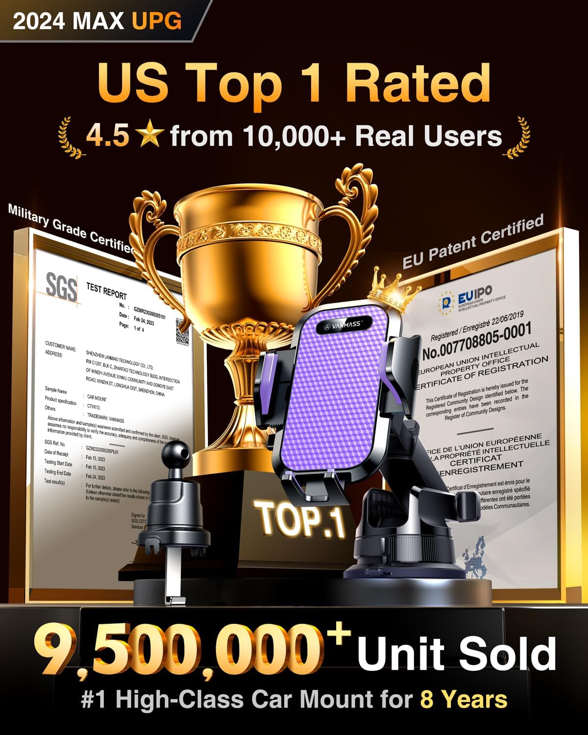 - ăTrue Military-Grade Certified, Upgraded Ultimate Car MountăVANMASS, the leader in high-end car phone holder. Over the past 8 years, We have listened to the voices of millions of users, rigorously tested to MILITARY GRADE standards (stability, compatibility, flexibility, security, durability). Finally, we overcome all weaknesses to design the Ultimate Model that we are most satisfied with. This item obtained international military-grade shockproof certification No. GZMR220601855501