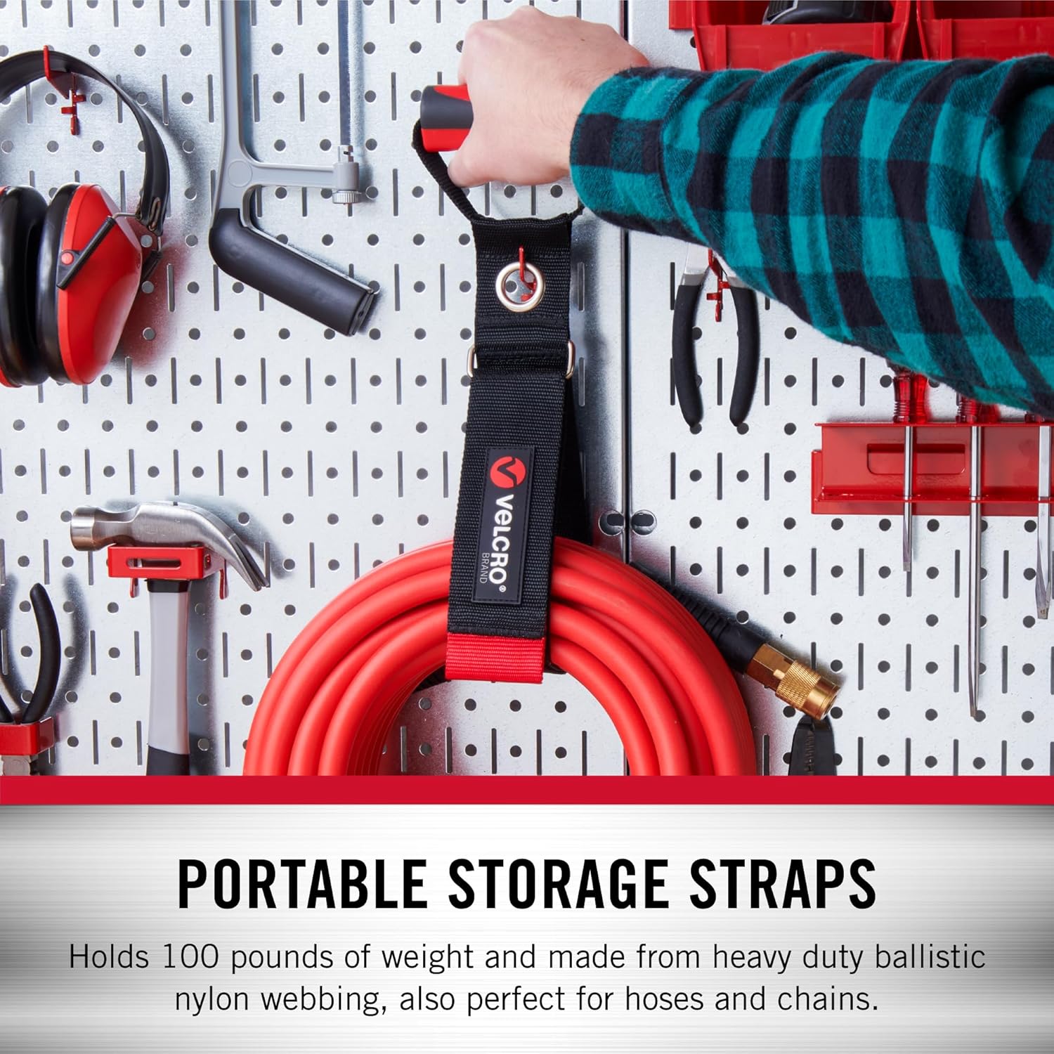 VELCRO Brand Heavy Duty Carrying Strap with Handle | Holds 100 Pounds | Extension Cord Storage, Easily Transport or Hang Garden Hoses | Durable Garage Organization | Medium, Wraps 5.5 Inch Diameter