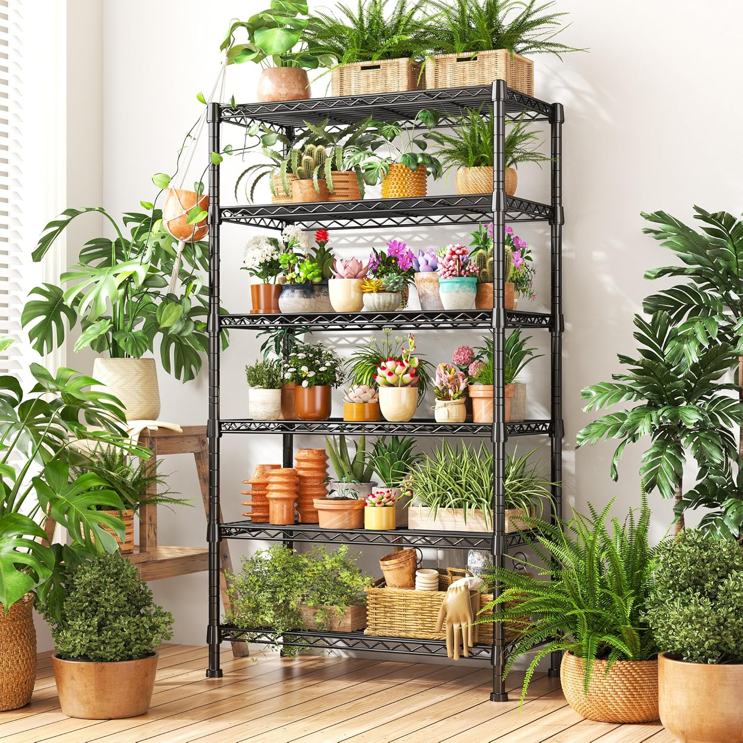 REIBII 6-Tier Storage Shelves Metal Shelving for Storage Load 1000 LBS,Wire Shelves Heavy Duty Shelving Unit Adjustable Pantry Shelf Bathroom Kitchen Garage 24" W x 14" D x 71" H, Black