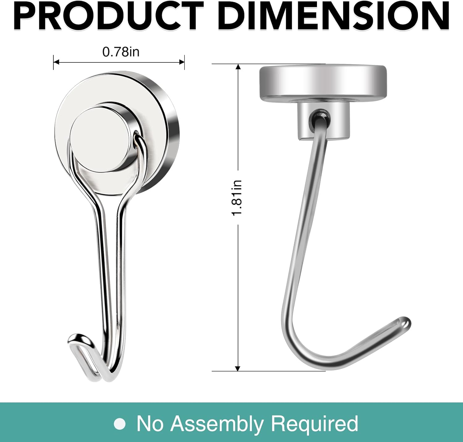- 【Hassle-Free Service】- The neodymium magnetic hooks are extremely high quality and are checked during and after production for quality, your purchase is protected, return at any time and at any point. What are you waiting for, It is time to declutter the space
