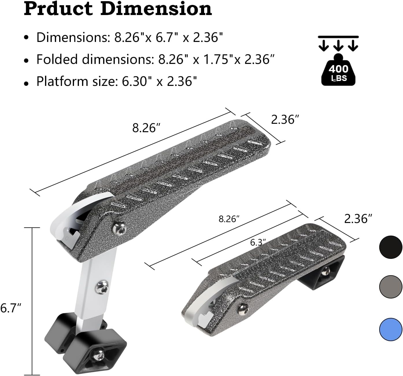 - Safe Design: Designed for front and rear doors of all vehicles, the car door step features a scissor lock structure design with bidirectional force. Crafted from high-quality aluminum and iron, this doorstep is lightweight yet robust and durable. It can withstand a load of up to 400 pounds without deformation