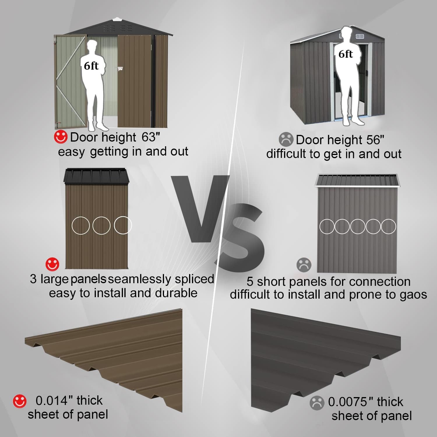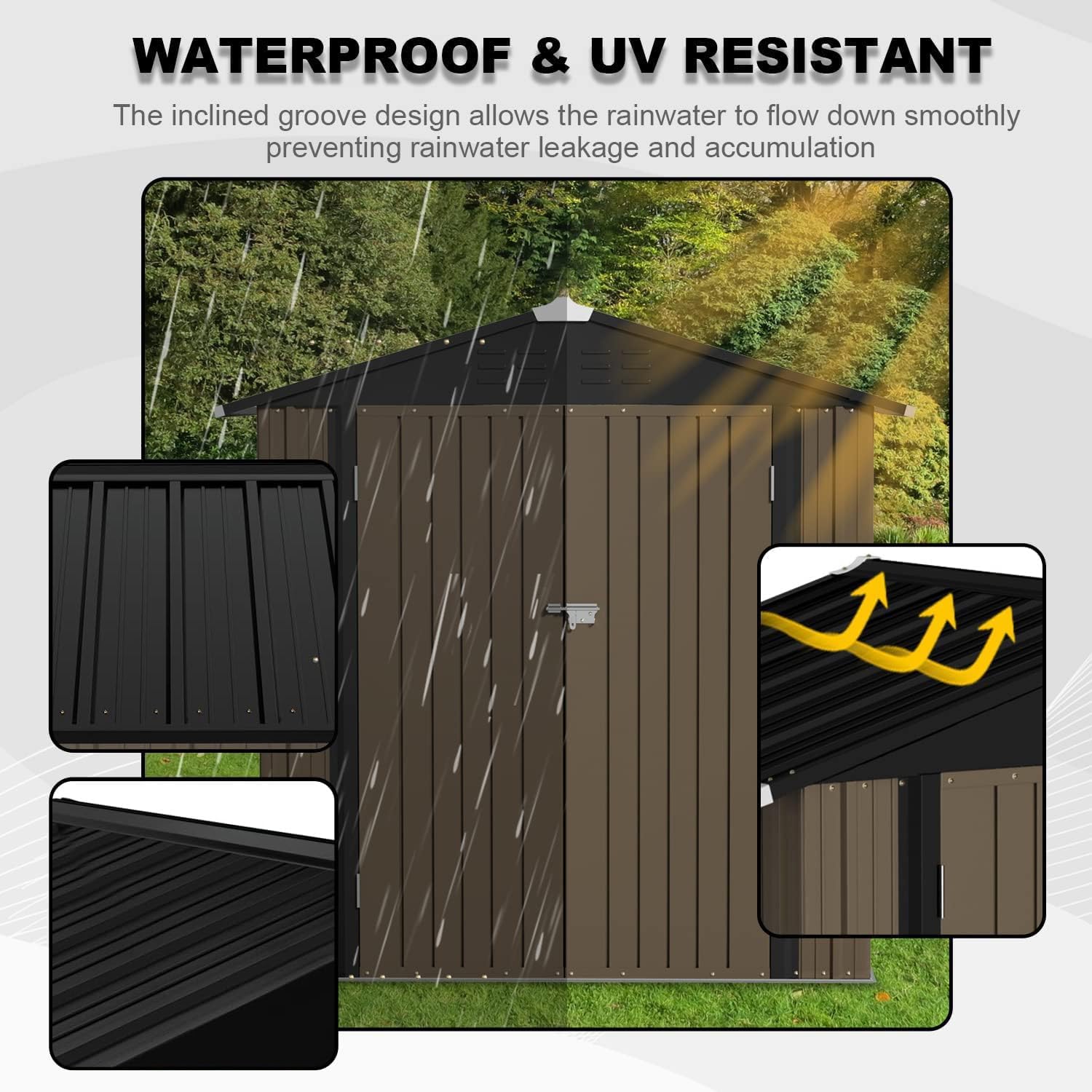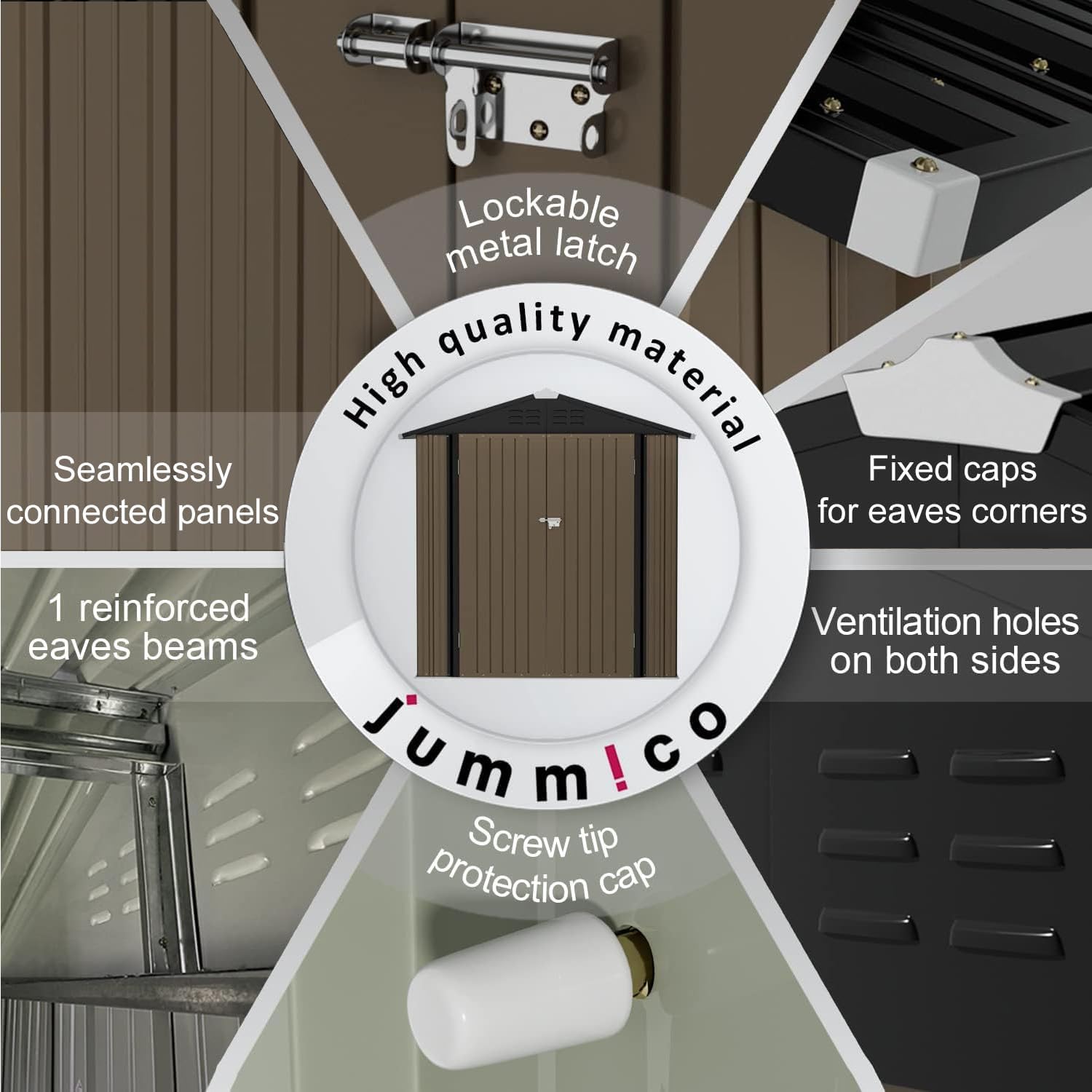 JUMMICO Metal Outdoor Storage Shed 6 x 4 FT Metal Shed with Lockable Door,Waterproof Garden Tool Shed Storage House for Backyard Patio Lawn,Brown
