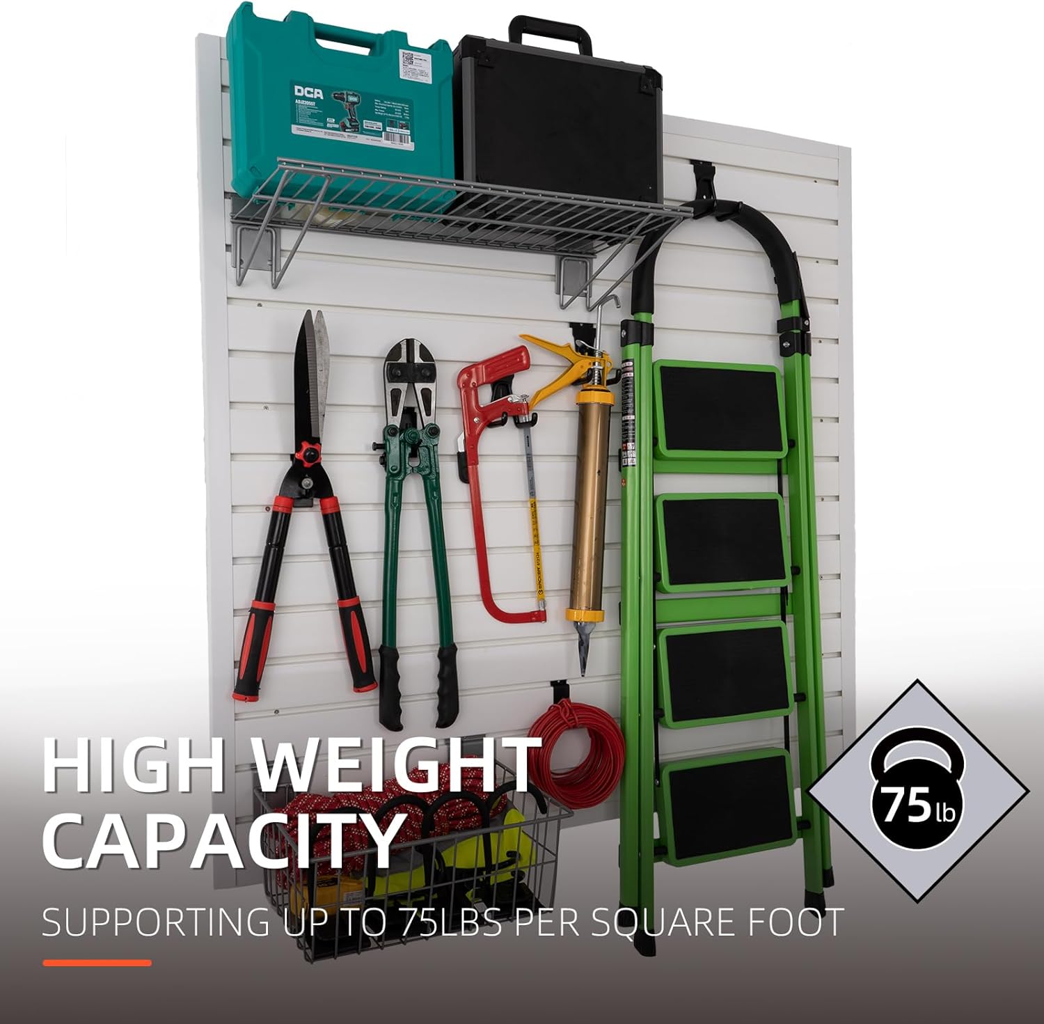 - MAKE FULL USE OF YOUR SPACE: Unleash the true potential of your garage wall organizer for tools with the garage slat wall panel. By making smart use of vertical wall space, you can revolutionize your garage into a seamlessly organized and efficient area. Bid farewell to a messy garage and welcome a meticulously optimized space that maximizes every inch available. Enjoy effortless access to your tools, equipment, and accessories, all while crafting a visually captivating environment.