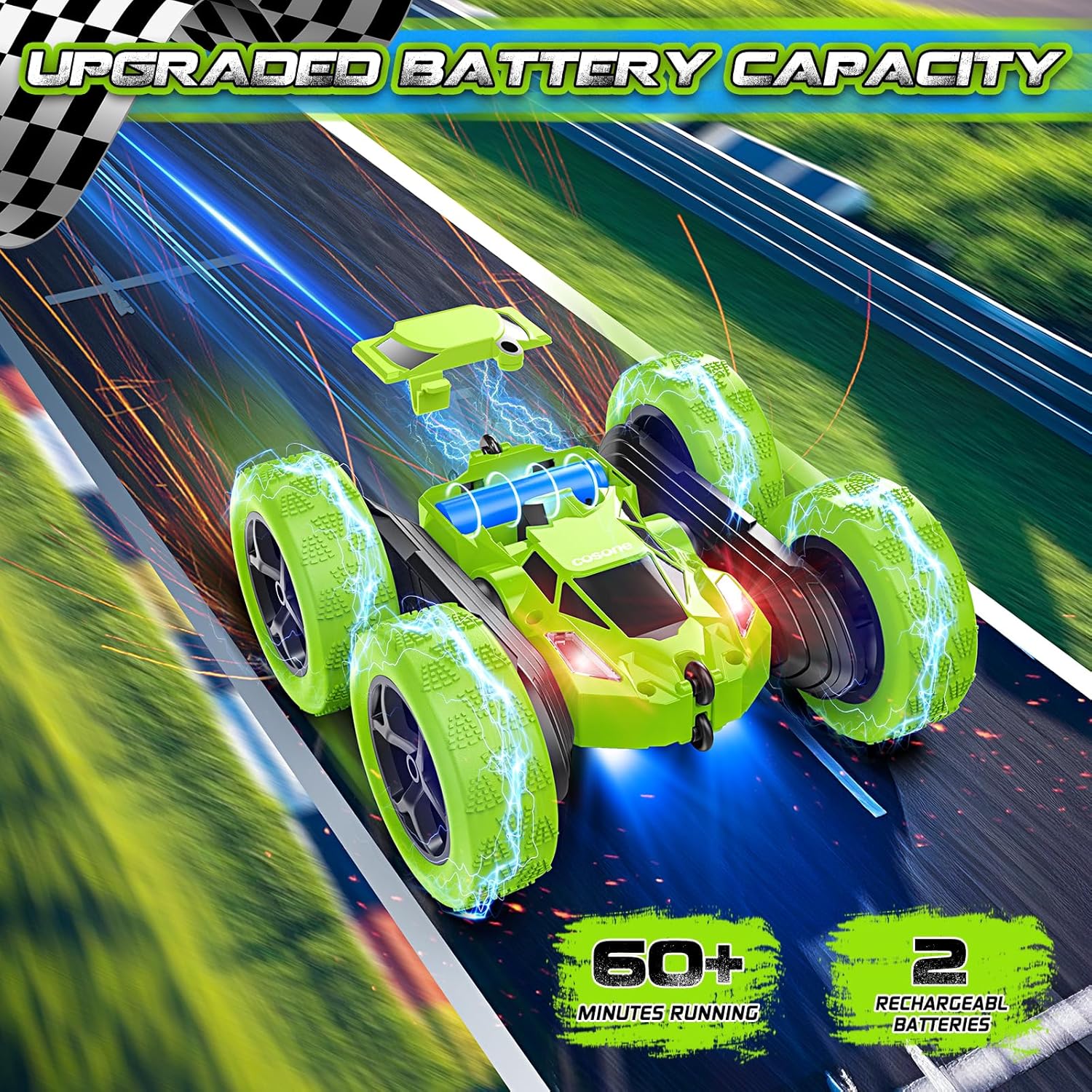 Remote Control Car - RC Car Toys for Boys - 4WD 2.4Ghz Double Sided 360° Rotating RC Cars, Birthday Gifts for Kids Age 6 7 8-12 for Boys and Girls- Green