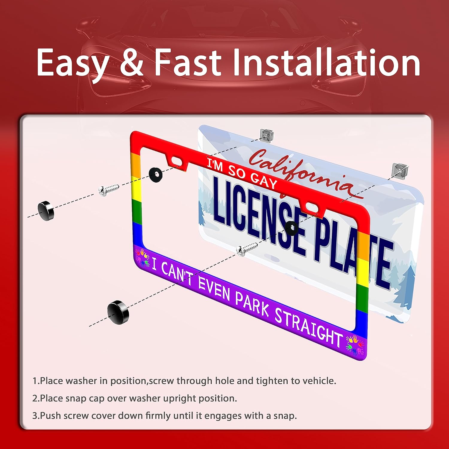 Gay License Plate Frame I'm so Gay I Can't Even Park Straight LGBT Funny License Plate Stainless Steel Parts with Screws Size 12.3" x 6.3" Men Women