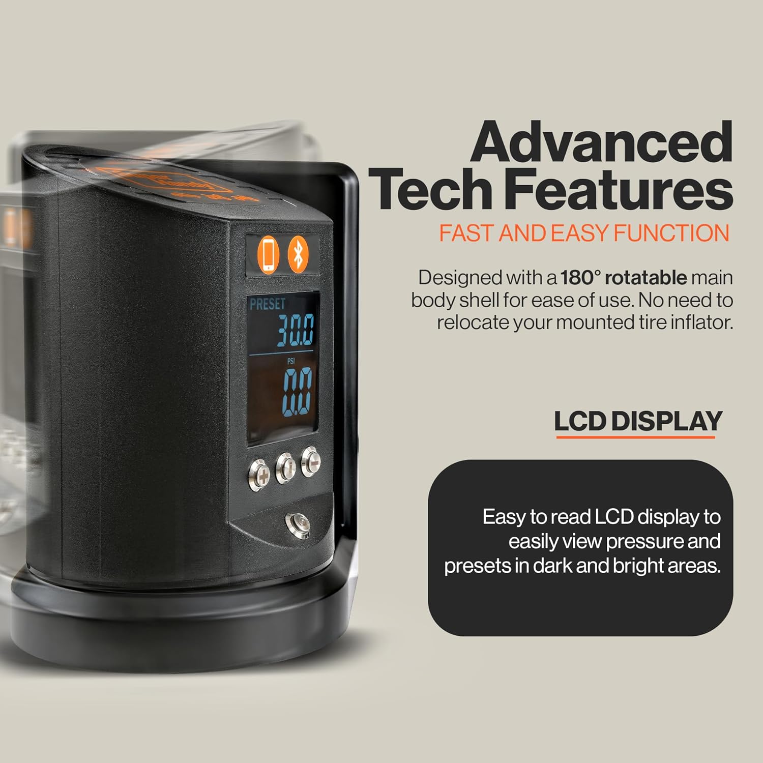- Advanced Control System: Operate this tire inflator easily through APP and Bluetooth, enhancing work efficiency and adapting to different operating environments. It's important to note that this tire inflator does not include a built-in air compressor. External connection to a separate air compressor is required for operation.