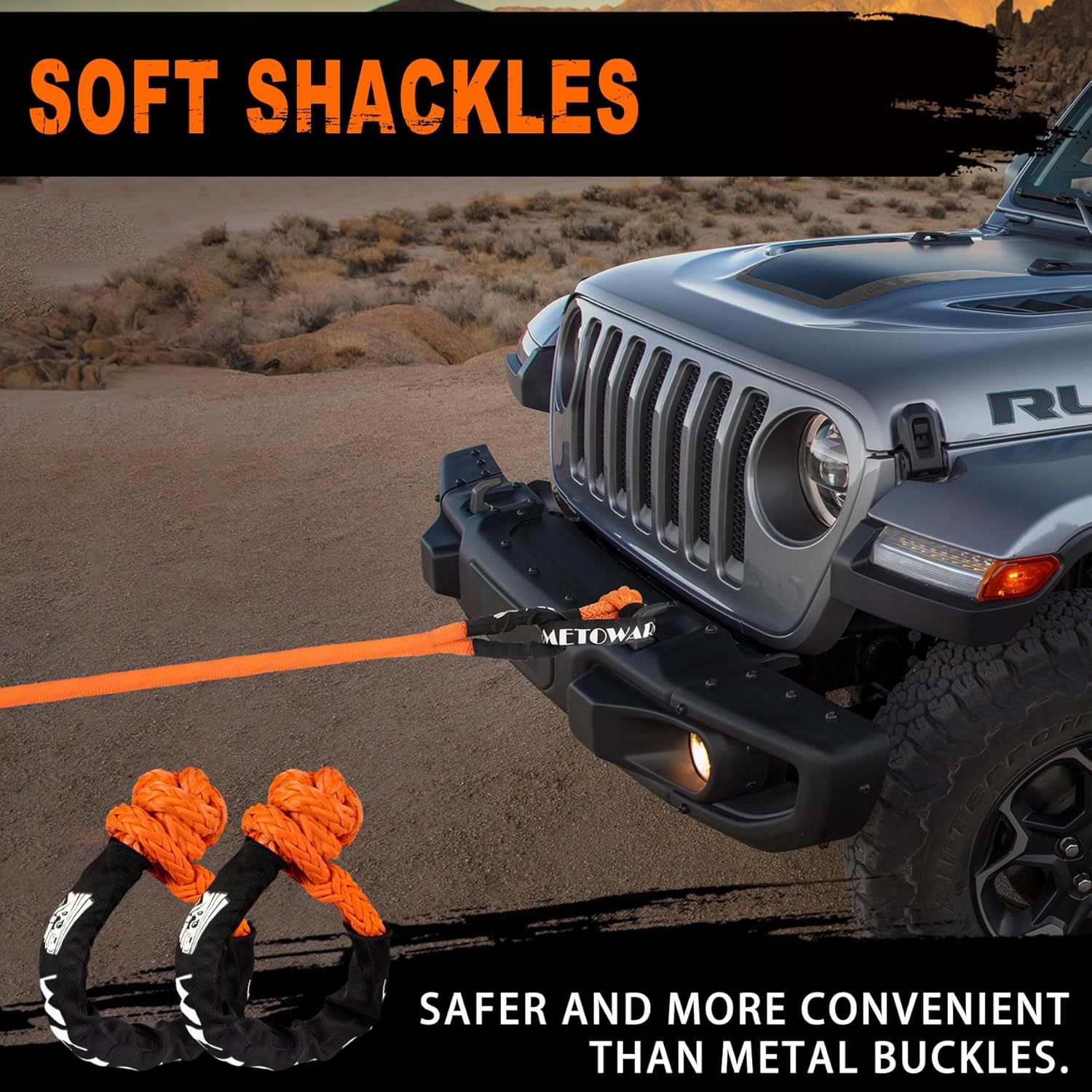 METOWARE Kinetic Recovery Rope (1’’ x 30ft) 35,000 LBS Offroad Tow Kit with 1/2inch x 22 Inch Soft Shackles, Heavy Duty Towing Rope Kit for UTV, ATV, Truck, Car