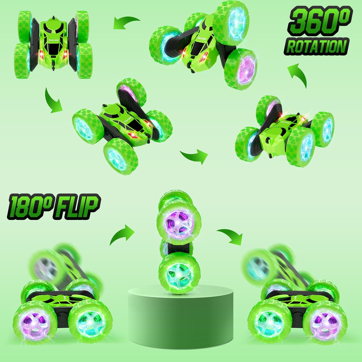 Remote Control Car, 360° Rolling Rotating 2.4GHz 4WD RC Cars for Kids, Boy Toys Age 6 7 8 9 10 Years Old, RC Crawlers for Boys Girls Birthday-Green