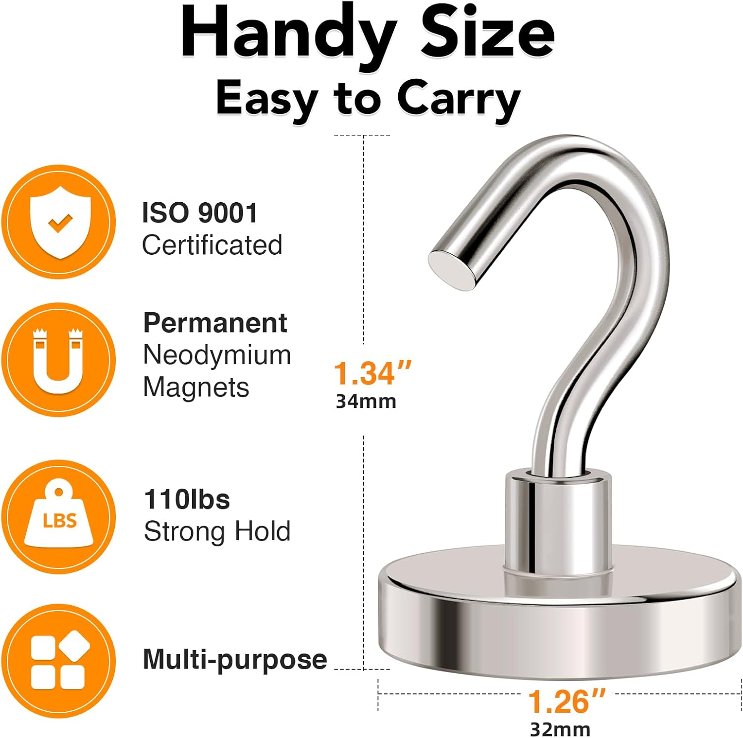 - STRONG PULLING FORCE: Our strong magnets with hooks are made of powerful neodymium magnets, which can reach 110 lbs horizontally and 36 lbs vertically. All magnetic grill hooks are designed to be heavy duty magnets hooks, ensuring reliable hanging