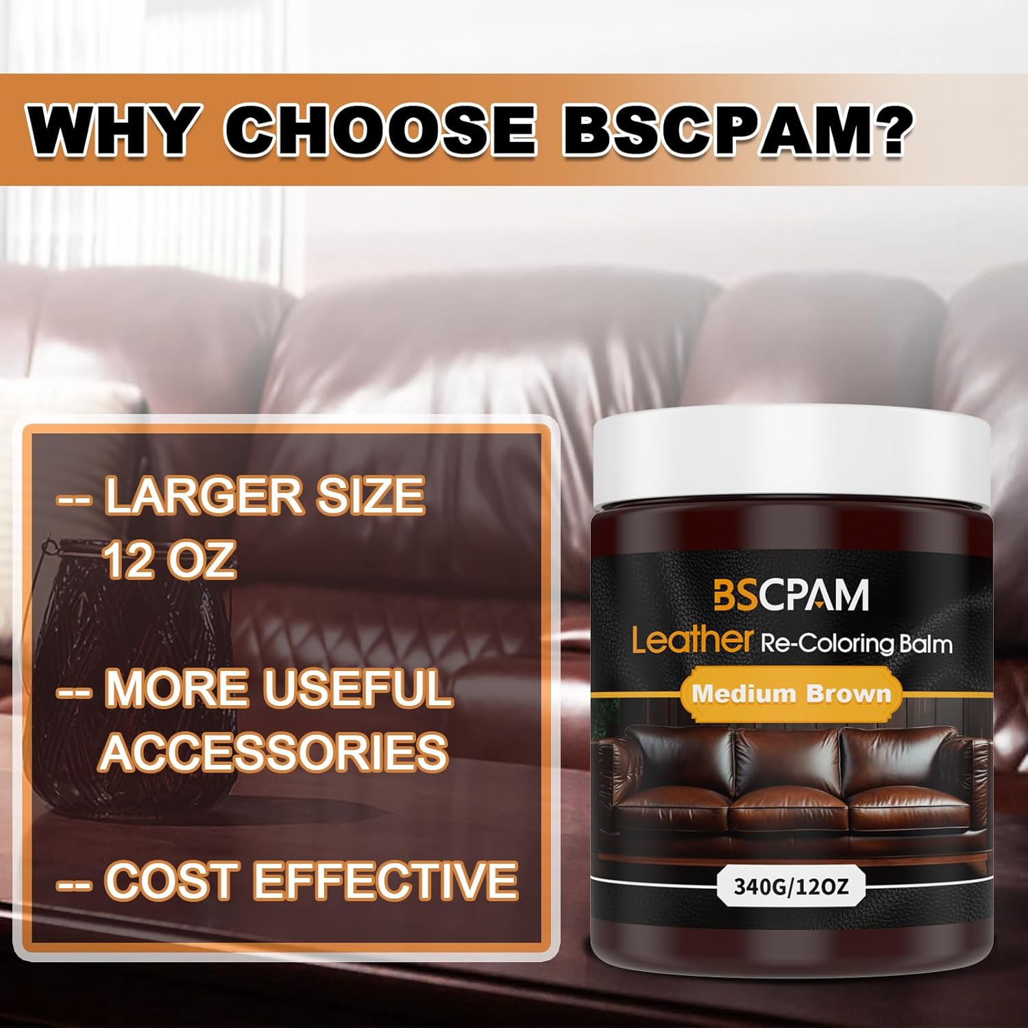 - SATISFACTION GUARANTEED: Our BSCPAM Furniture Leather Stain protects and restores your leather seating and furniture so well, you'll love these leather restoration creams. When used correctly, our products work wonders. If you are not satisfied with the results of your purchase. Please contact us and we will provide you with a satisfactory solution.