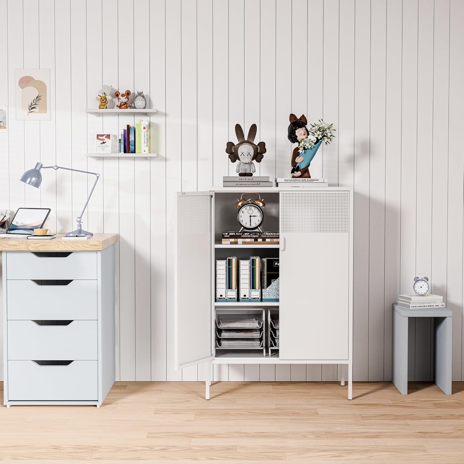 • Steel Construction: Crafted from durable alloy steel with a powder-coated white finish, this metal storage cabinet offers long-lasting durability for daily use at home or in the office.