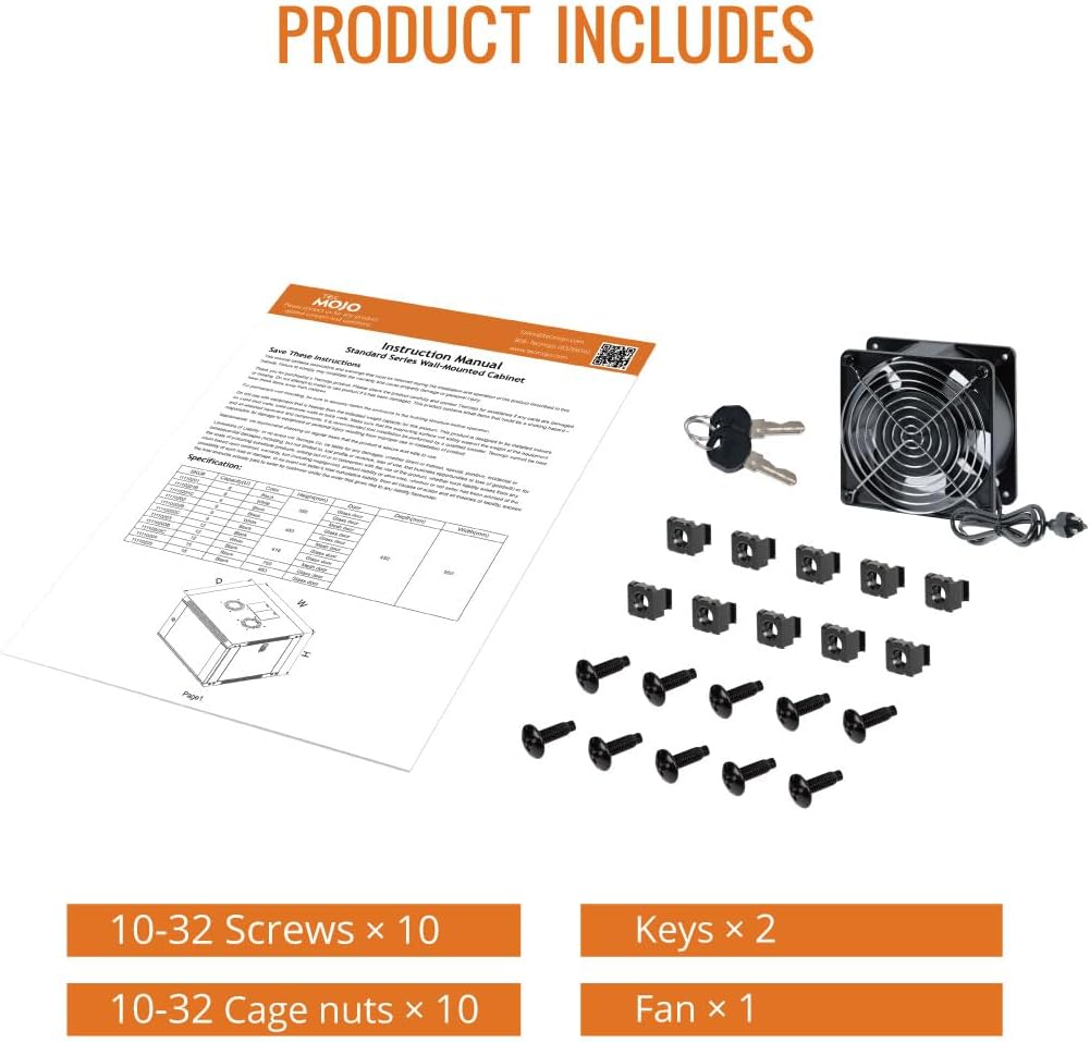 - Ventilation and Security: one-built-in top fan๏ผwith power cable) and flow through ventilation to prevent overheating of the network rack. Tempered glass front door and side panels are lockable to prevent unauthorized access