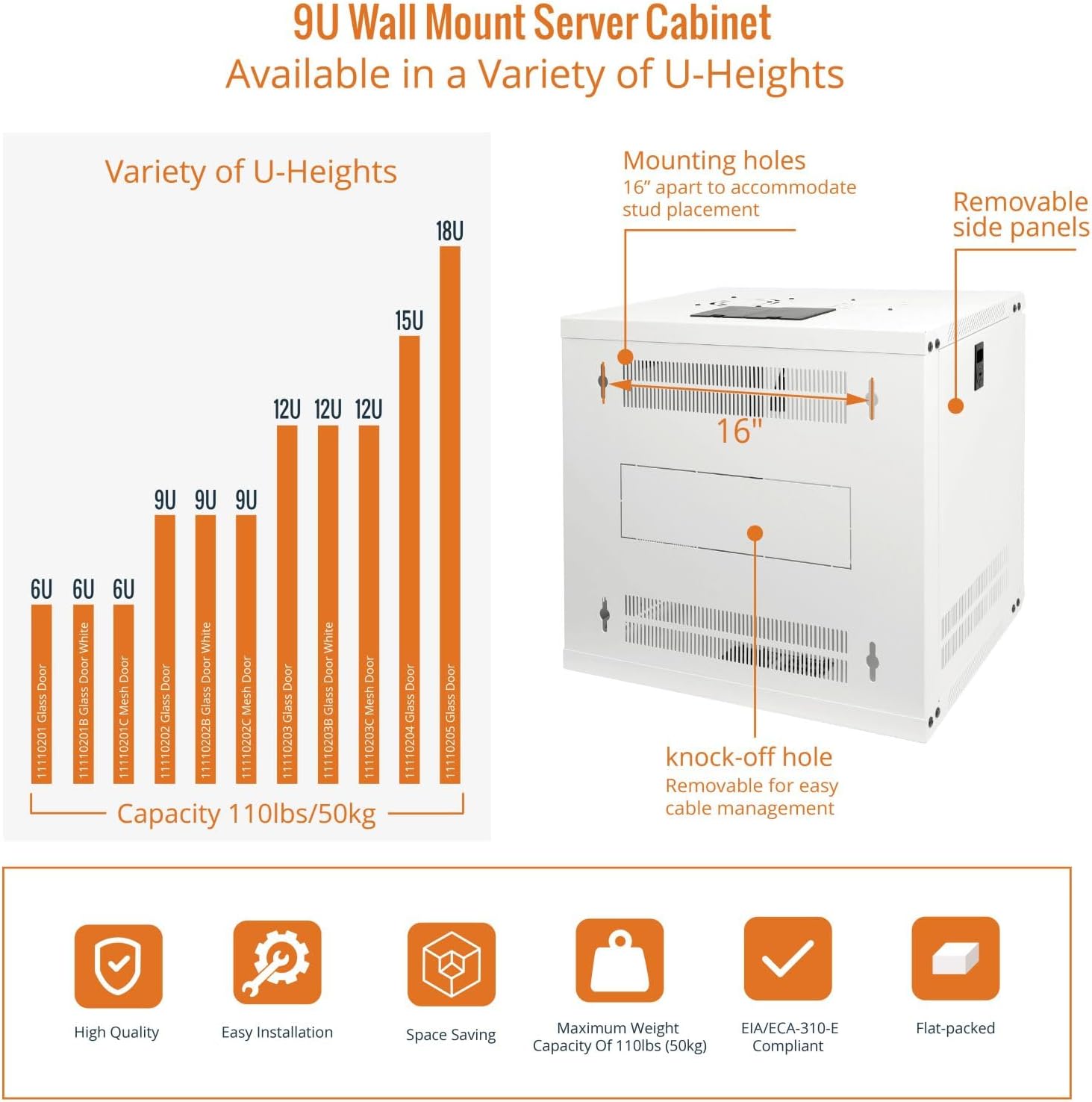 - Safety& Compliance: PCI & HIPPA and EIA/ECA-310-E compliant for the server rack cabinet