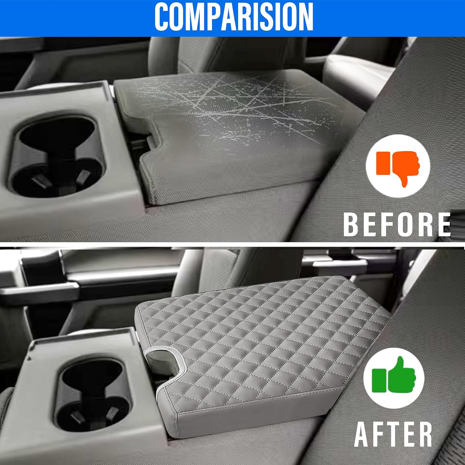 - FULL PROTECTION - This jump seat console cover is made of premium scratch-resistant artificial leather, protecting your center console lid from pets' claws, fingernails, key scratching, abrasion, dirty liquids, or dust. In the meantime, this armrest cover hides an already damaged center console so that you donβt have to replace the original console