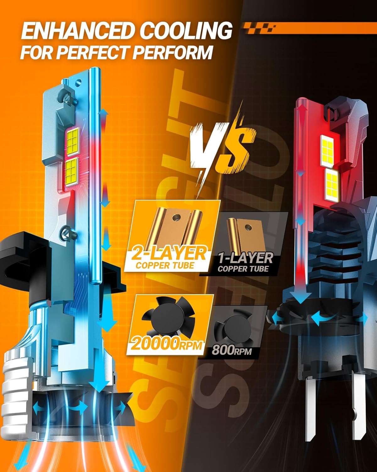 - Over 50,000 Hours Long Lifespan: The double cooling copper tube and 20,000 RPM cooling turbo fan helps speed down the core temperature, reached a perfect balance of long-lasting lighting and service life. No frequent bulb replacement troubled