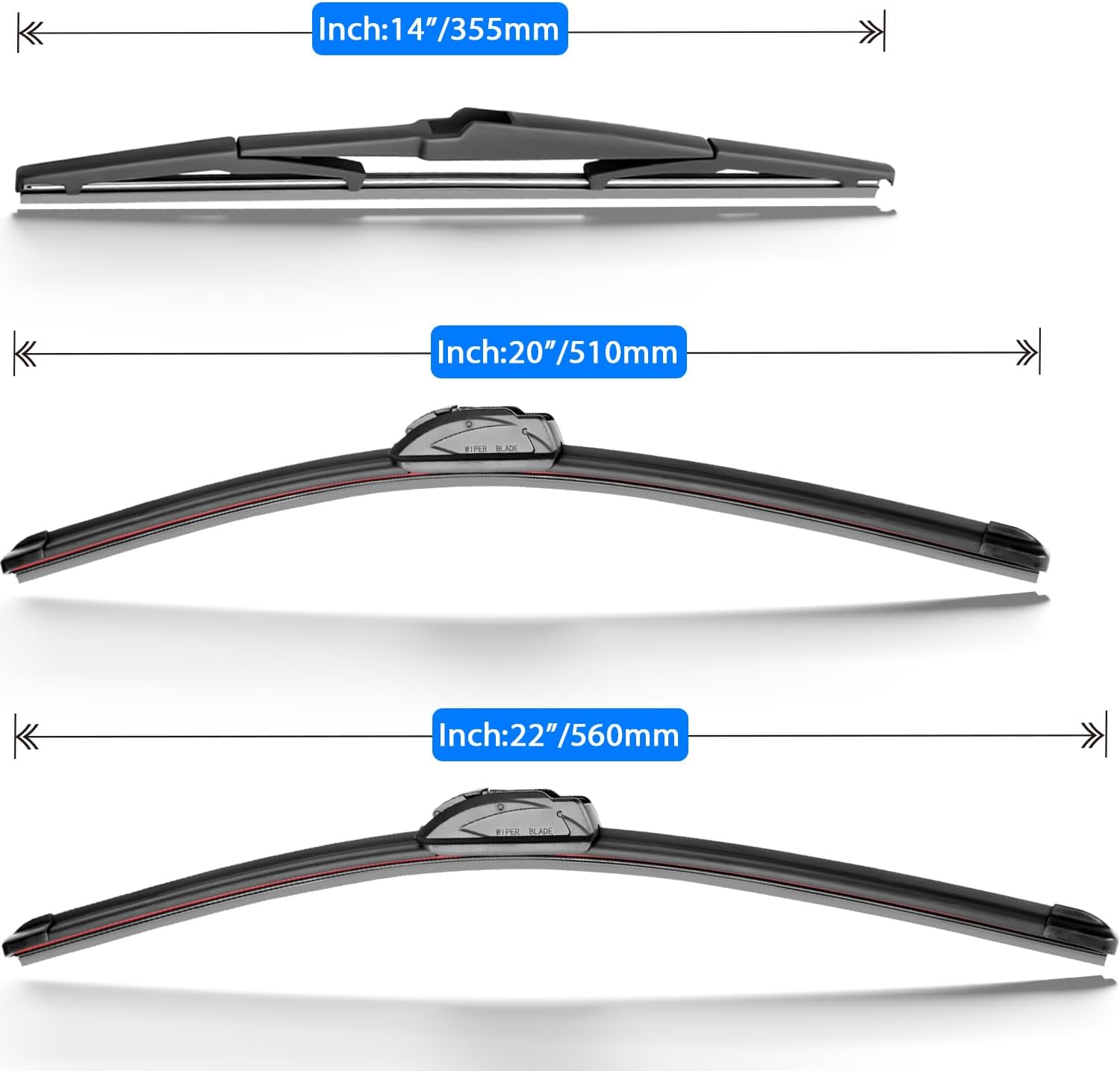 Windshield Wiper Blades Replacement for Scion xB 2008 2009 2010 2011 2012 2013 2014 2015 Original Factory Quality Front Rear Wipers Blade Set for My Car - 22" 20" 14" (Pack of 3)