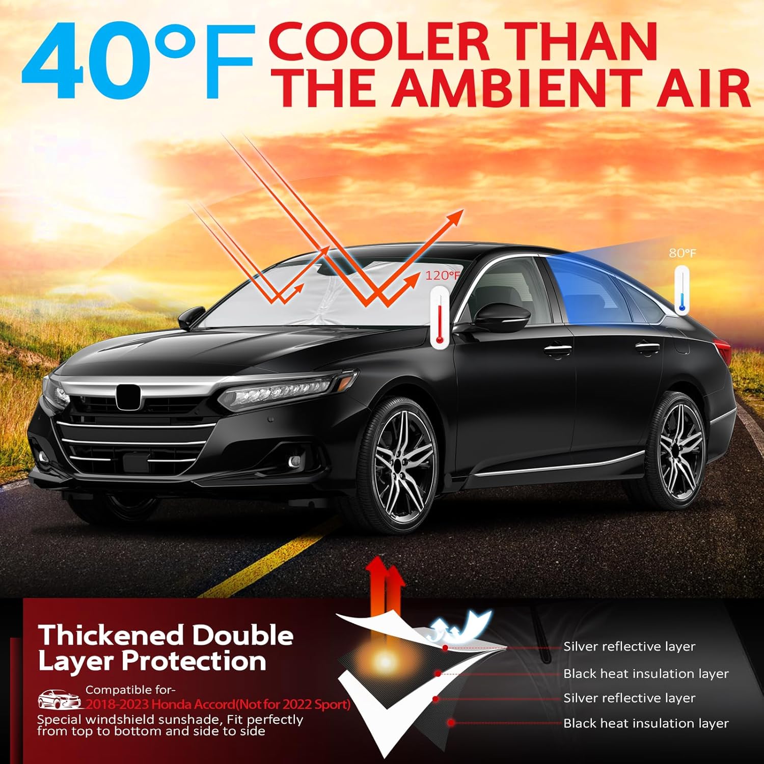 KAYZT Windshield Sun Shade for Honda Accord Sedan 2018-2025 Foldable Sunshade Front Window Custom Fit Accessories