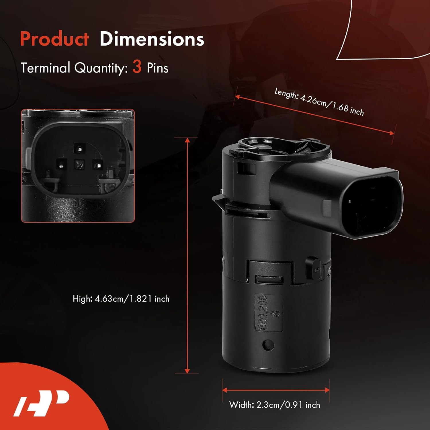 - [Specification]: ① Connector Gender: Male; ② Terminal Gender: Male; ③ Terminal Quantity: 3; ④ Terminal Type: Pin; ⑤ Package Quantity: 4x Parking Assist Sensor