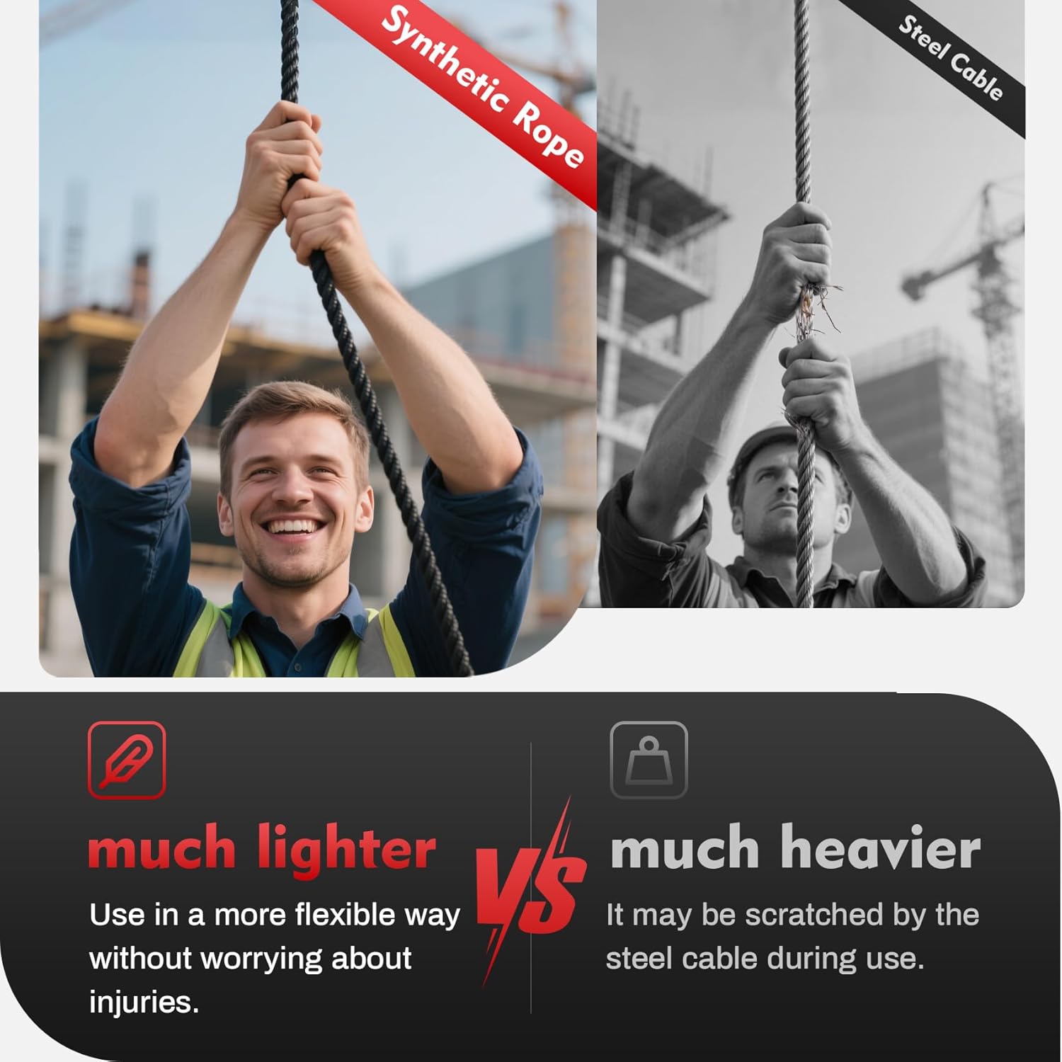 - 【Synthetic Rope】 Portable drill winch have synthetic ropes that are lighter in weight and perform better than traditional wire rope. Synthetic ropes offer lighter weight and better performance than traditional wire rope. During the rainy season, there is no need to worry about the corrosion of the rope by rainwate.Flexible fair lead,40' (12. 2 m) of 6/31" (5mm) synthetic rope