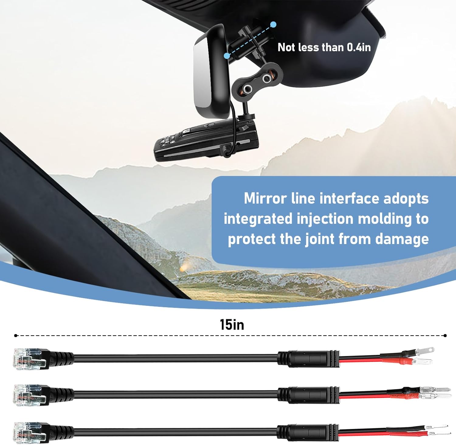 - Before using the rearview mirror plug cable,please ensure that your radar detector connection port is RJ11 jack